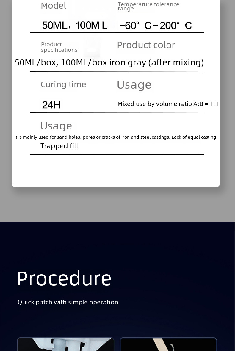 - Enhanced metal repair [casting glue] (50ml) with tools