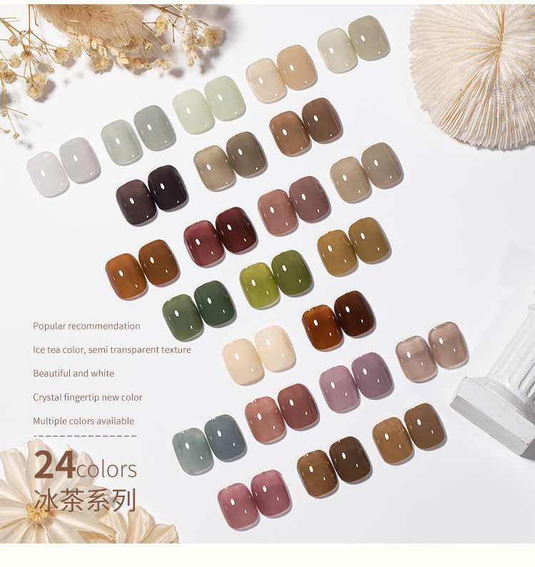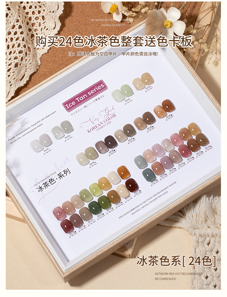 - Ice Tea 24-color set with exquisite color plate + nail sheet + bottom adhesive seal layer