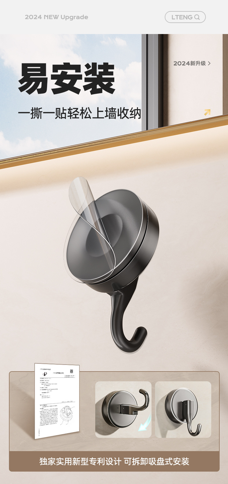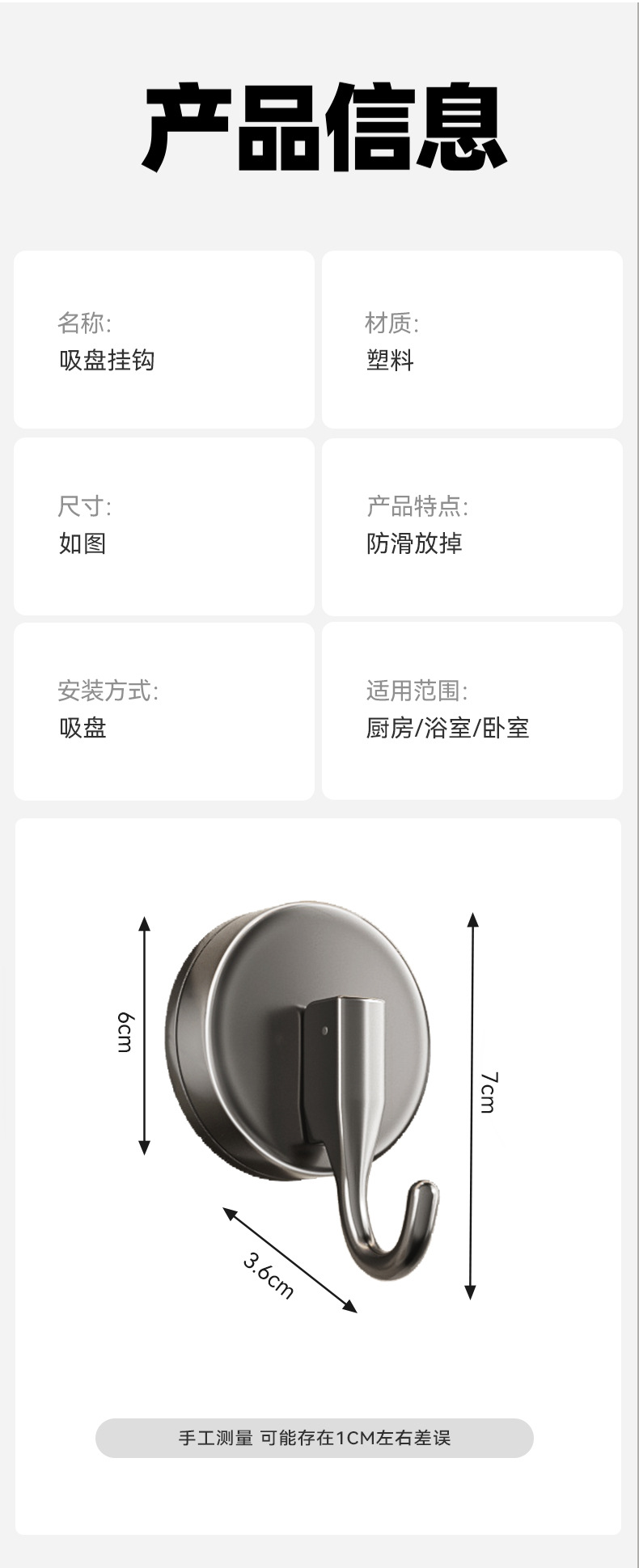 - [1 pack] gun gray sucker hook