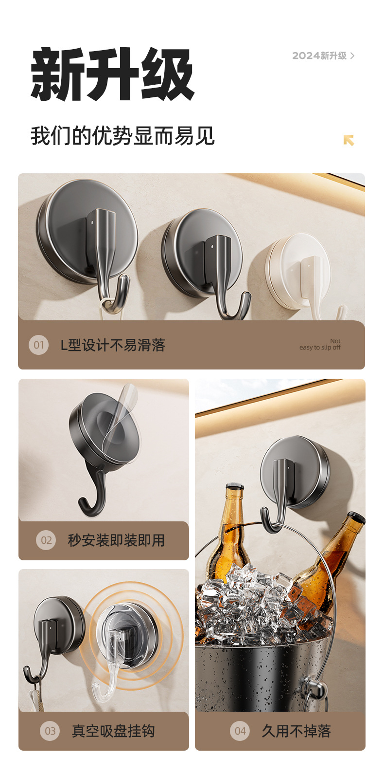 - [4 packs] gun gray sucker hook