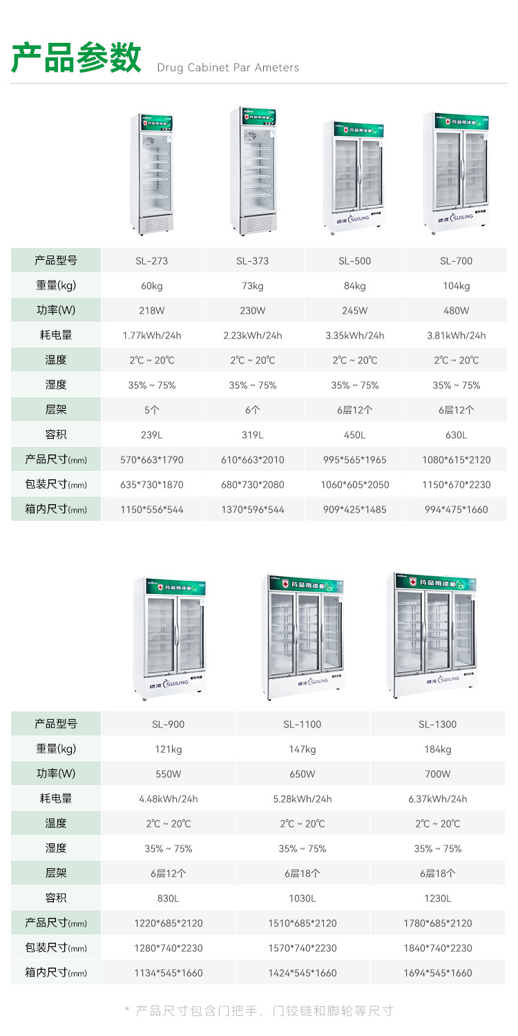 - 450L double door medicine cool cabinet [temperature/humidity controllable data record] SL-500