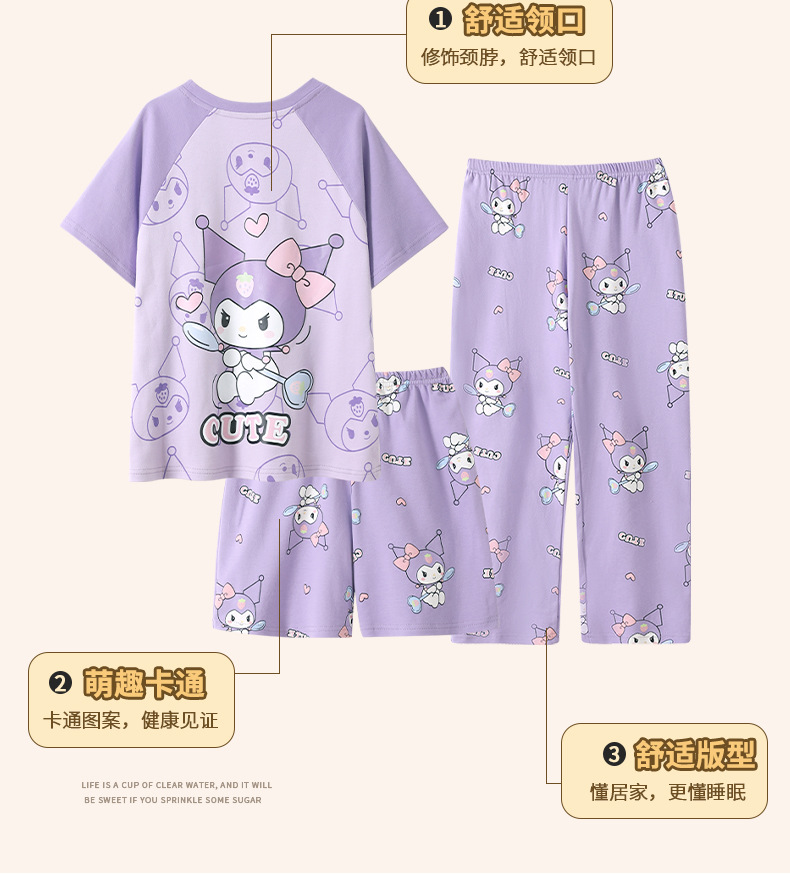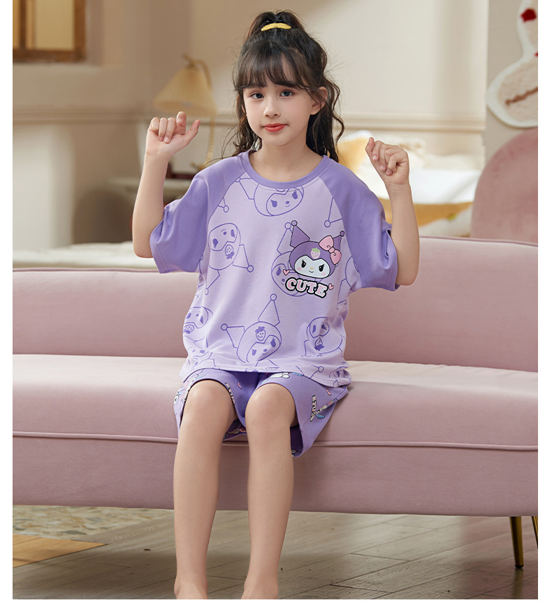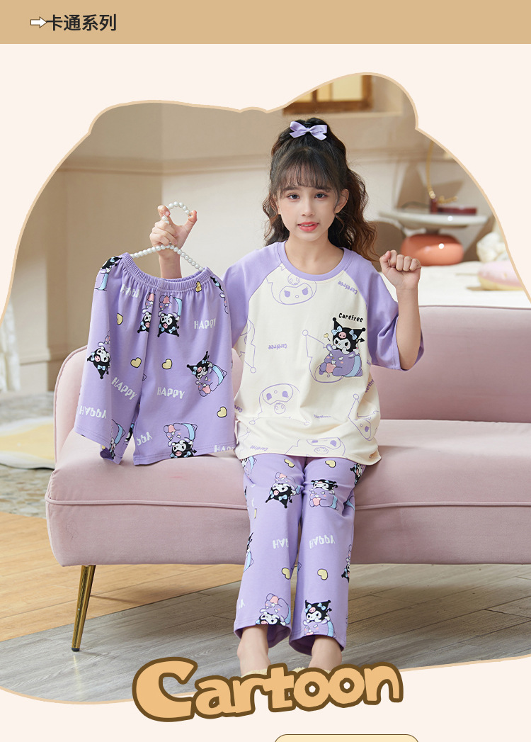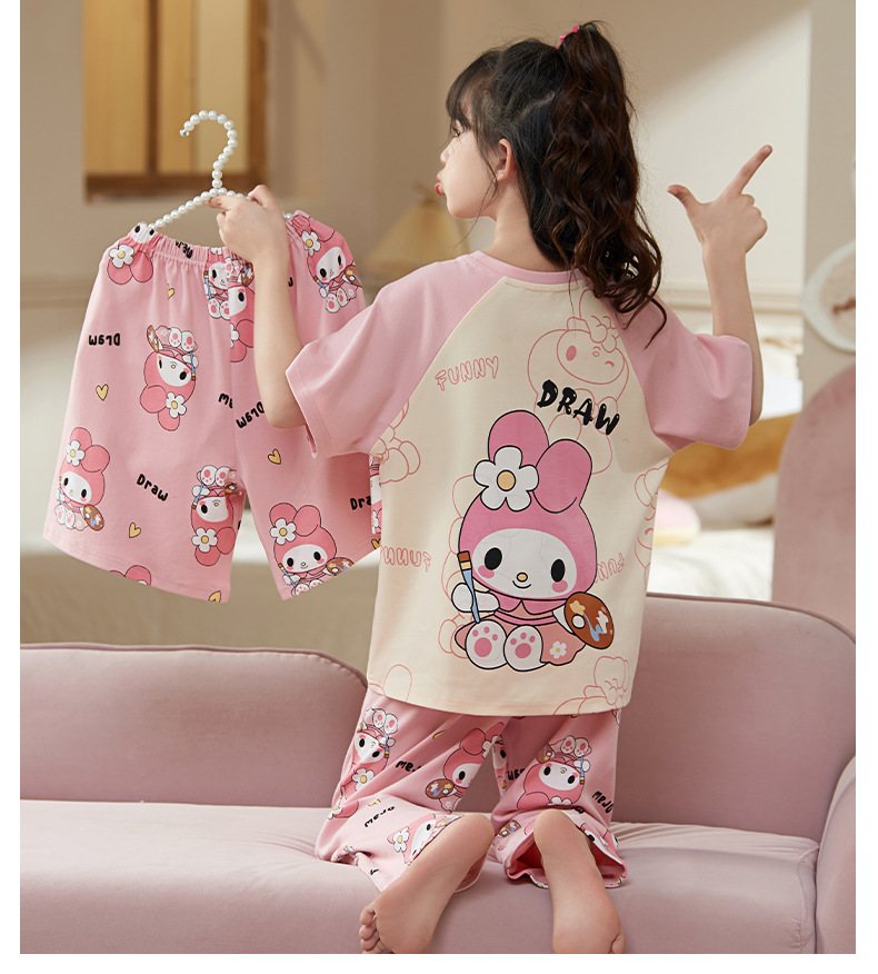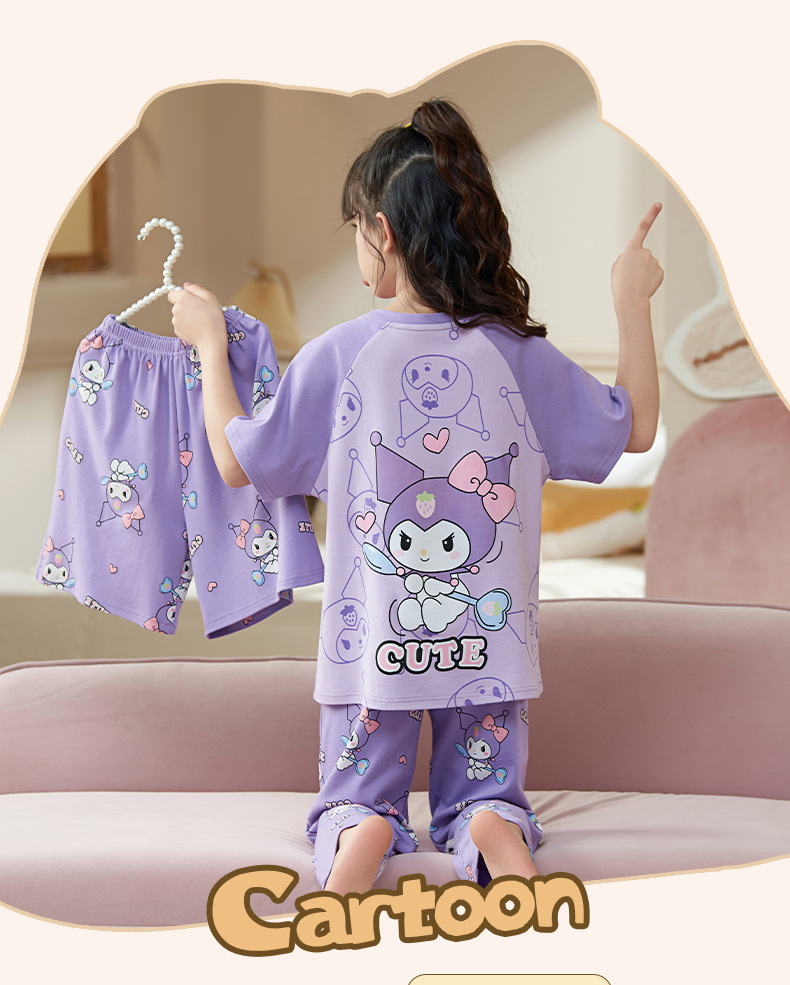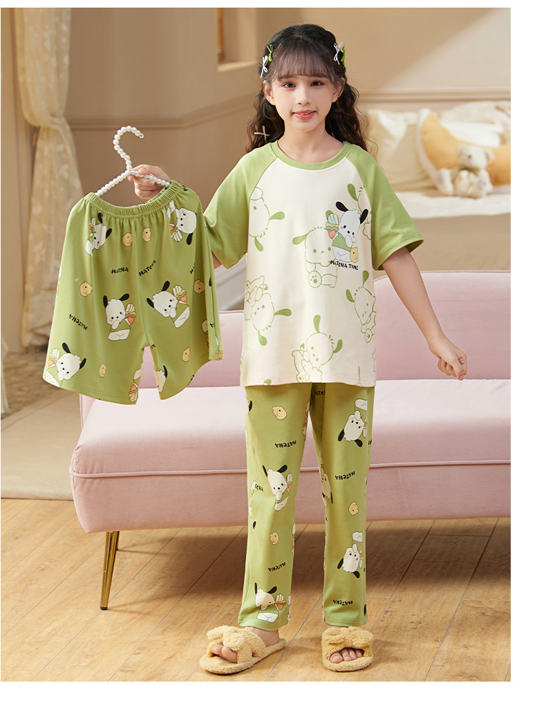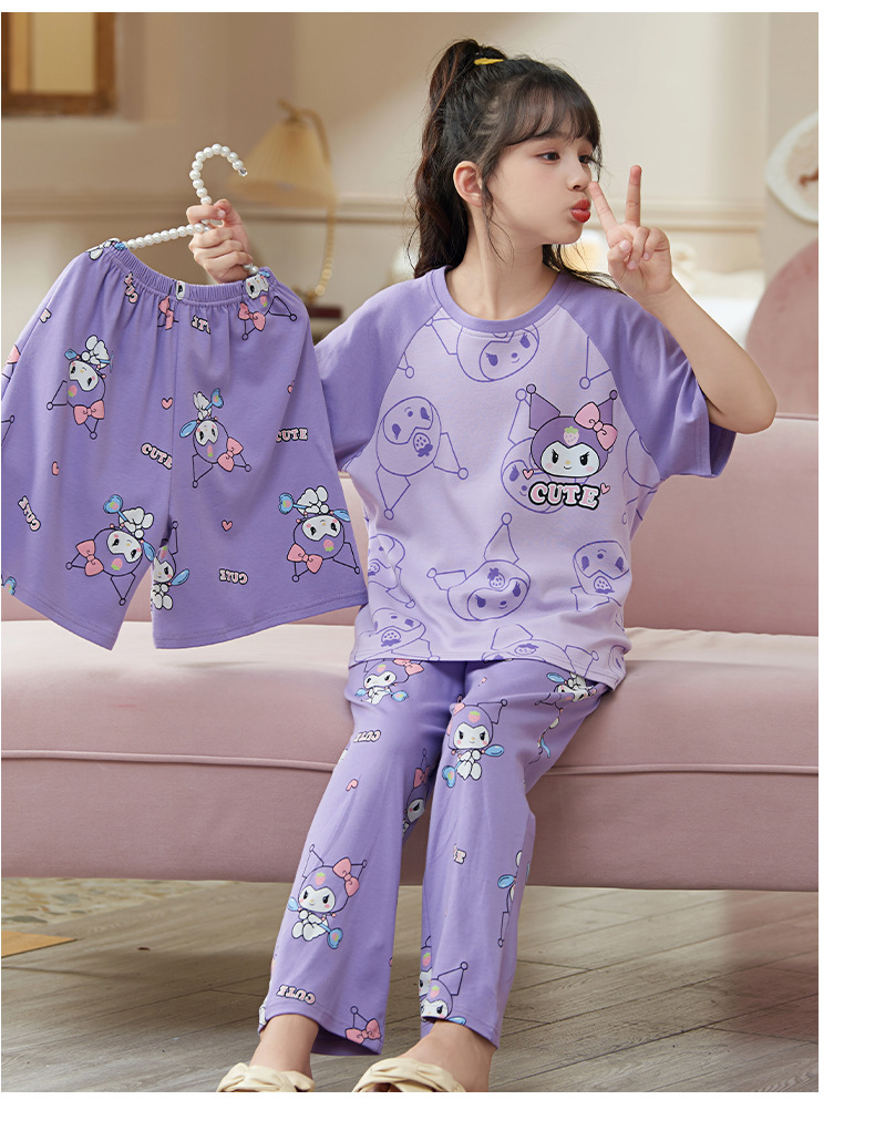 Summer Cotton Children s Pajamas Girls Cartoon Merleti Princess Girls Summer Short sleeved Three piece Home Clothes