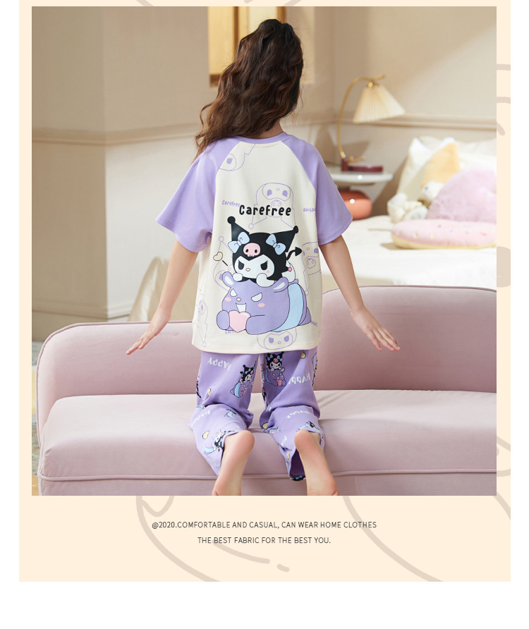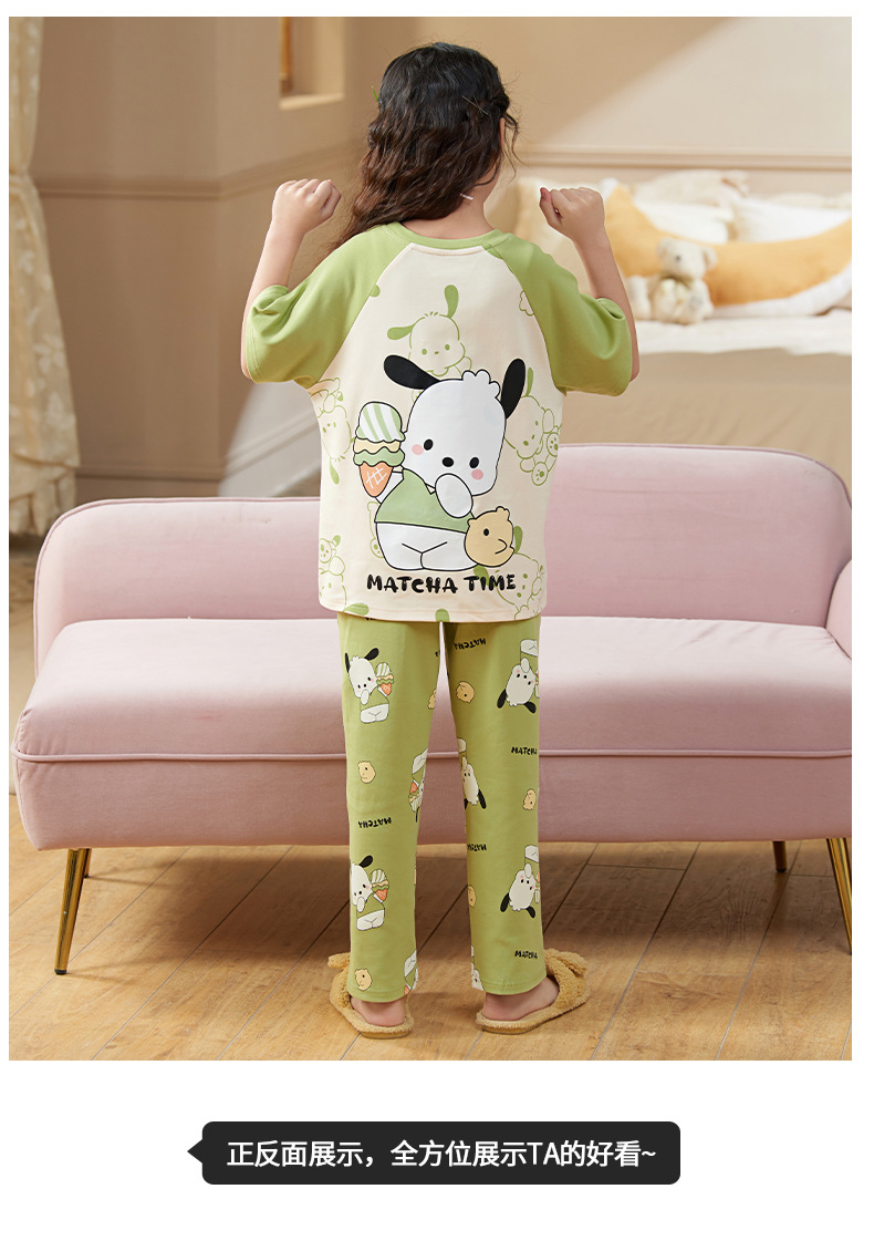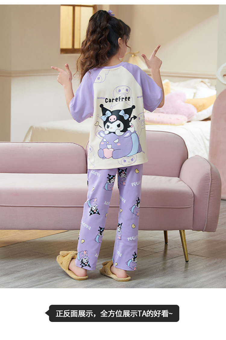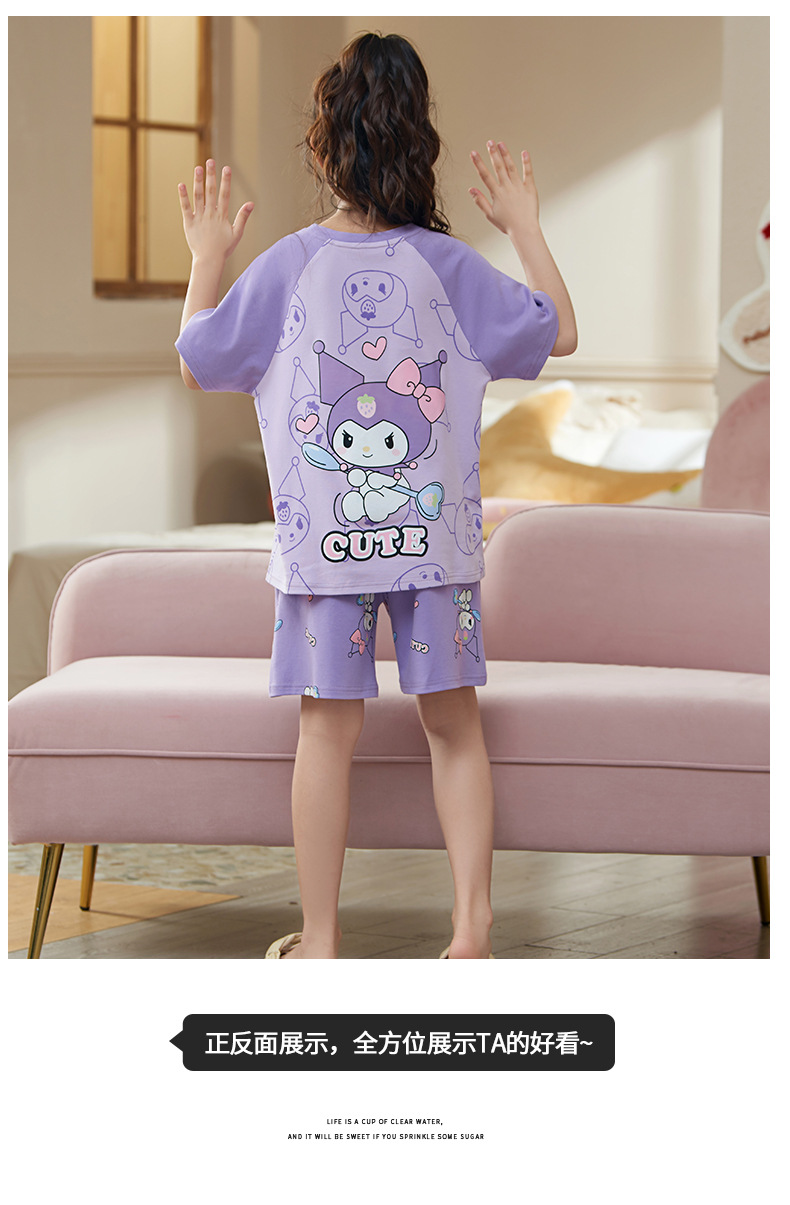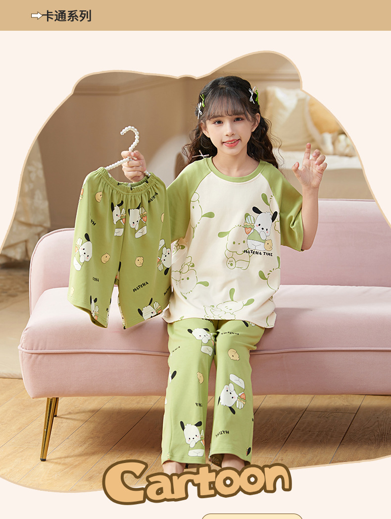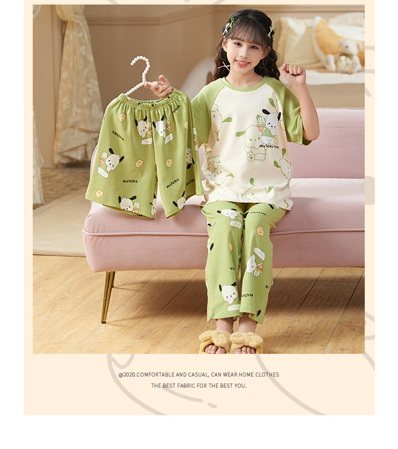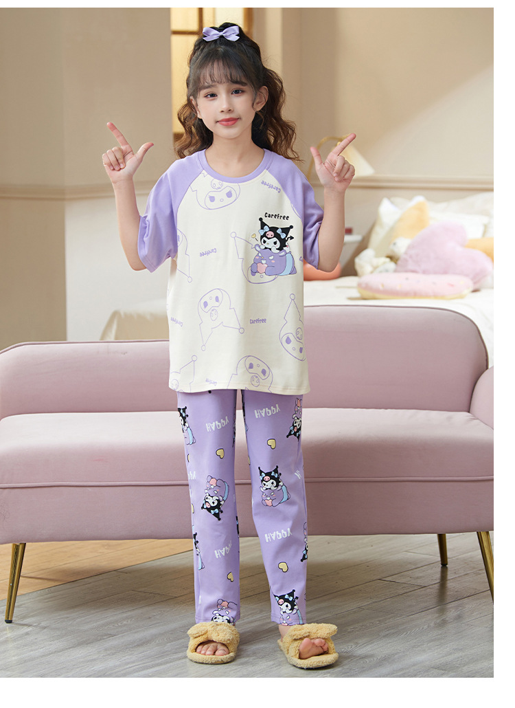 Summer Cotton Children s Pajamas Girls Cartoon Merleti Princess Girls Summer Short sleeved Three piece Home Clothes