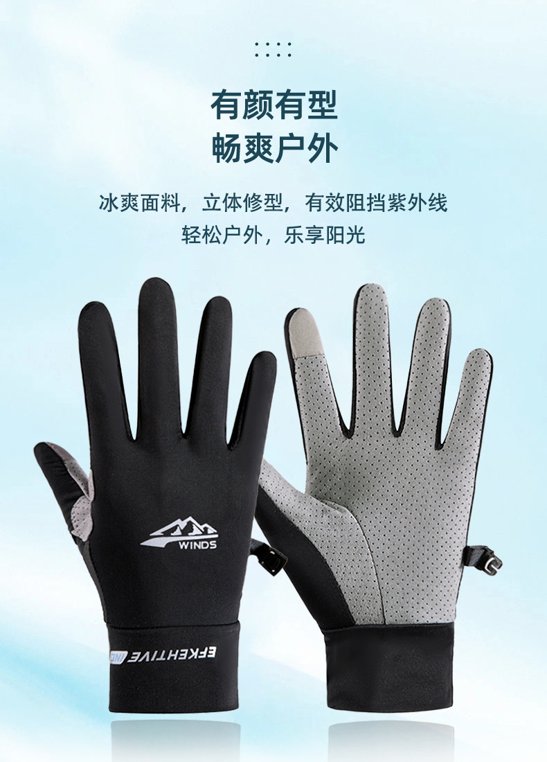 Summer Ice Silk Fishing Gloves Luya Leakage Two Finger Sun Protection UV Quick Drying Non Slip Touch Screen Cycling