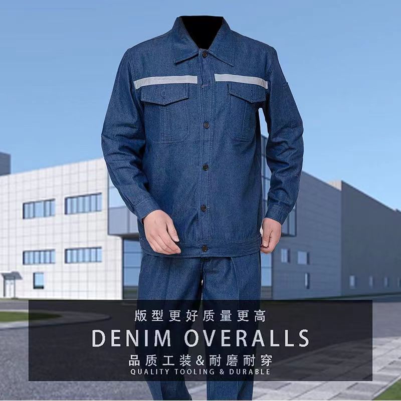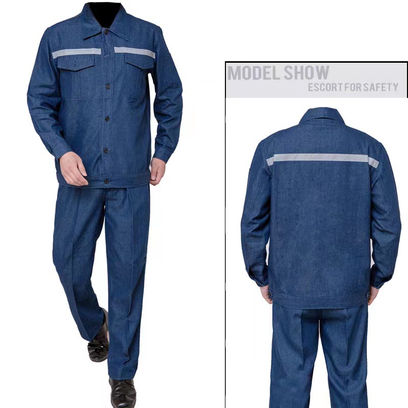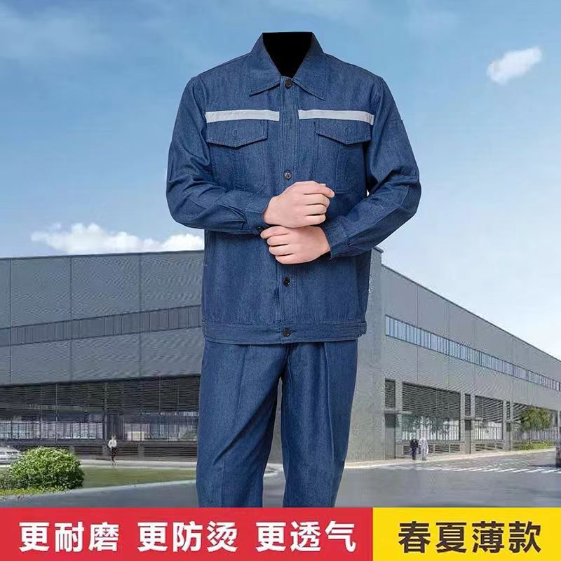 Summer new Denim work clothes suit men s long sleeved thin washed Denim electric welding machine repair work clothes