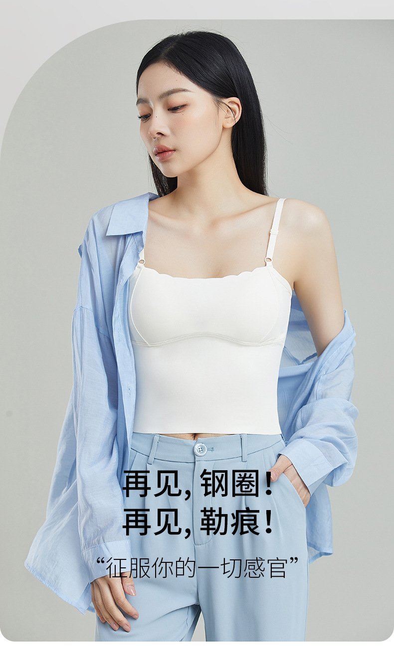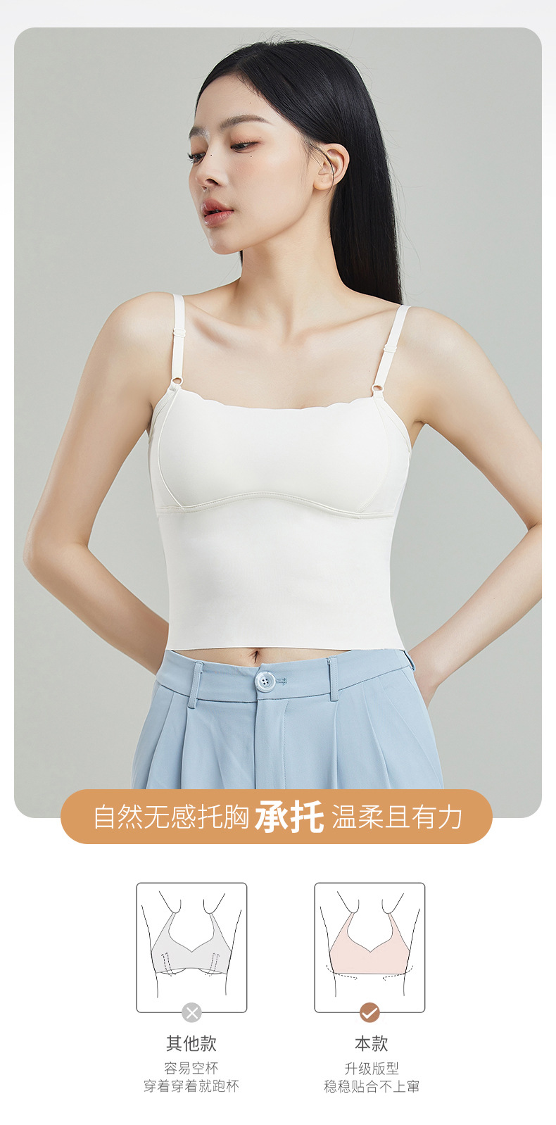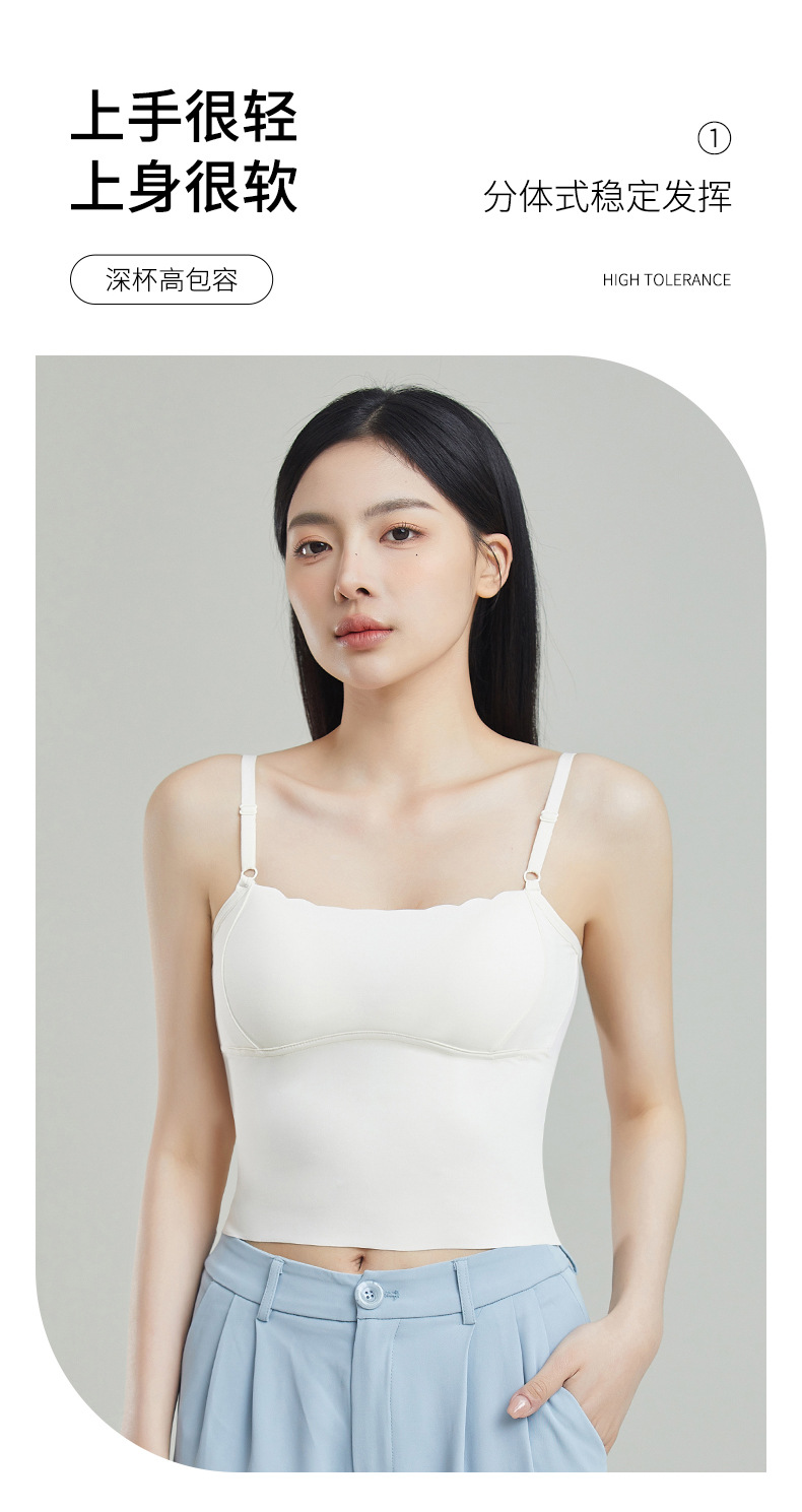 Summer new Ice Silk solid color bottoming Vest Women s seamless comfortable outer wear fixed Cup strap beauty back women s bra