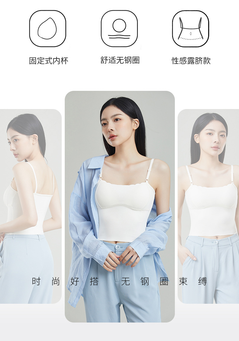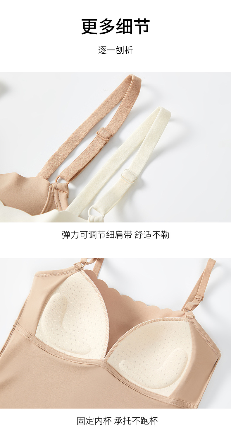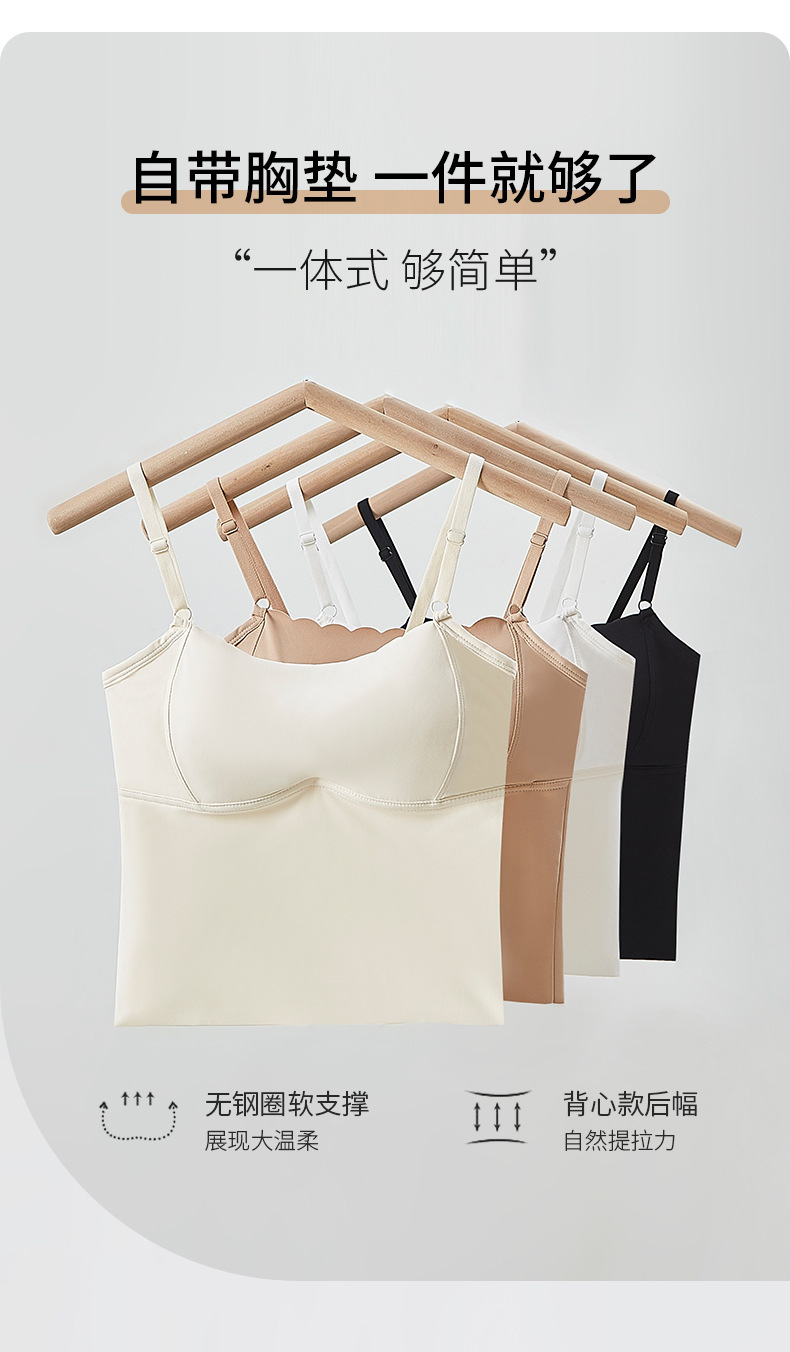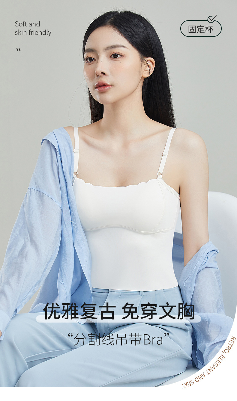 Summer new Ice Silk solid color bottoming Vest Women s seamless comfortable outer wear fixed Cup strap beauty back women s bra