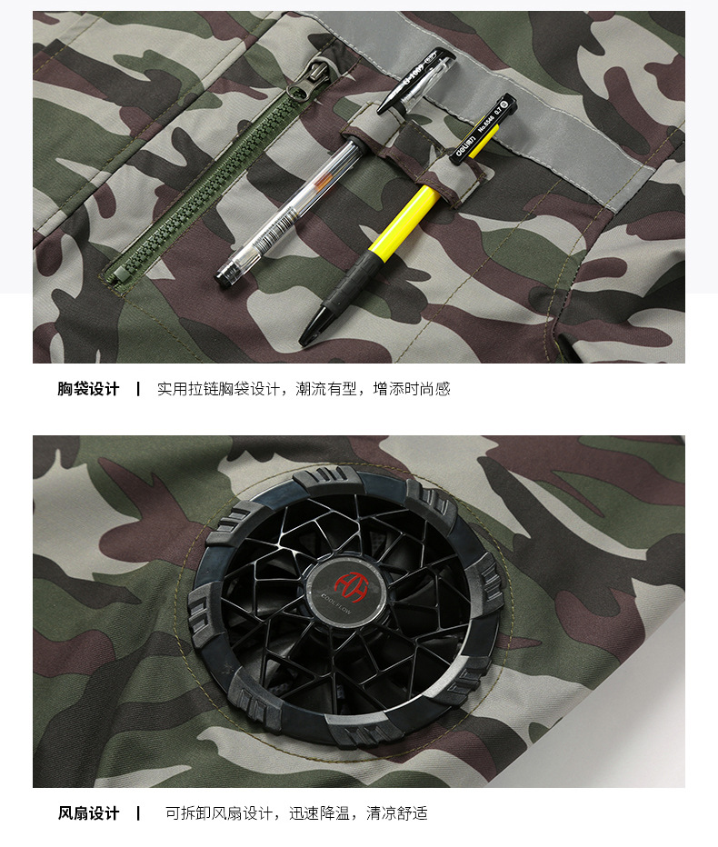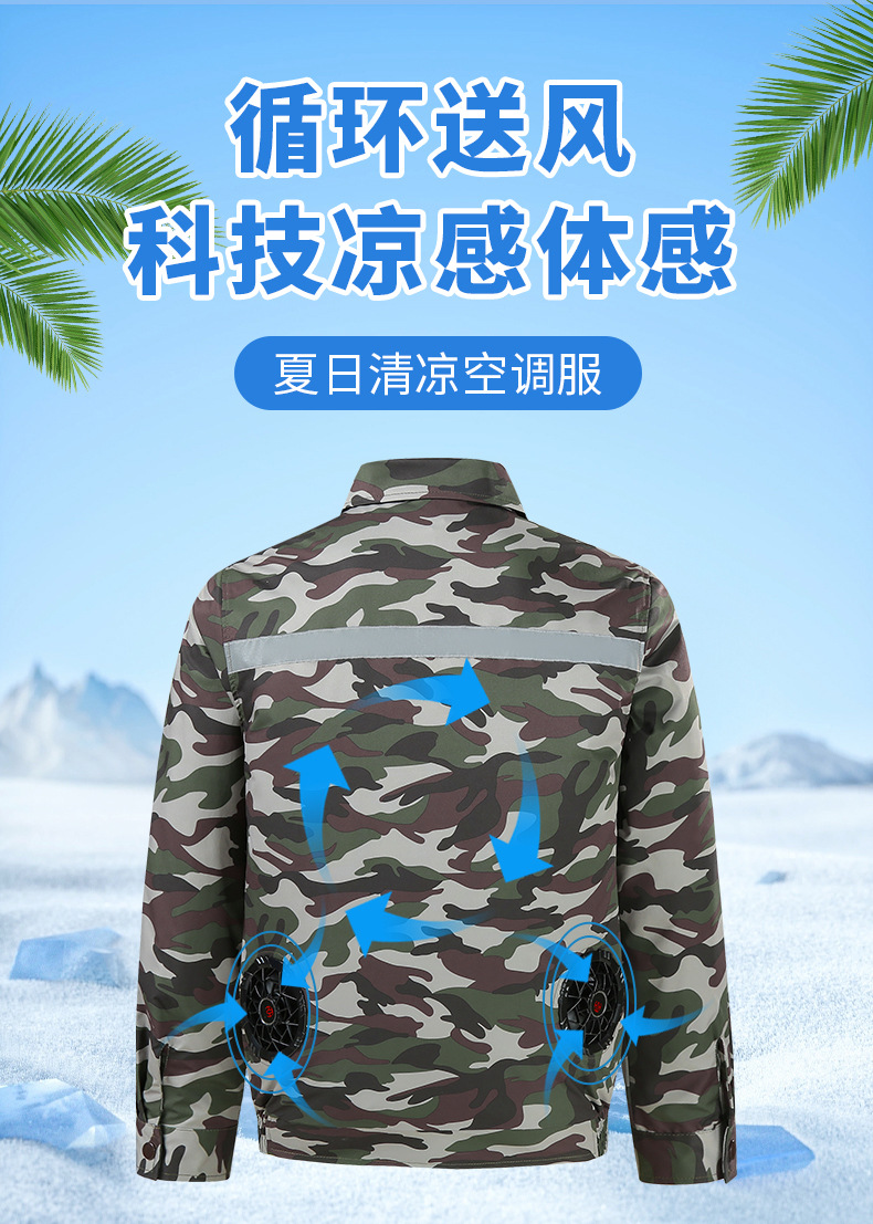Summer new double zipper long sleeve tooling outdoor air conditioning clothing factory workshop cooling labor protection fan clothing