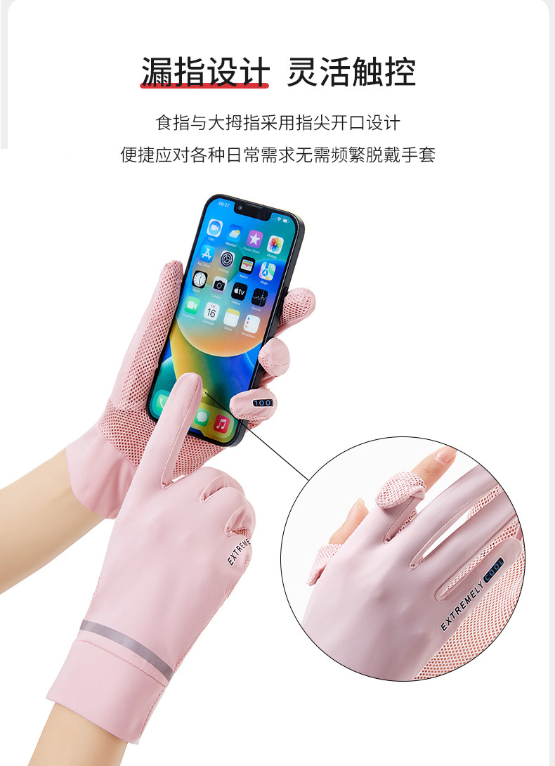 Sun protection gloves women s touch screen Summer flip reflective outdoor riding mesh breathable UV protection thin gloves
