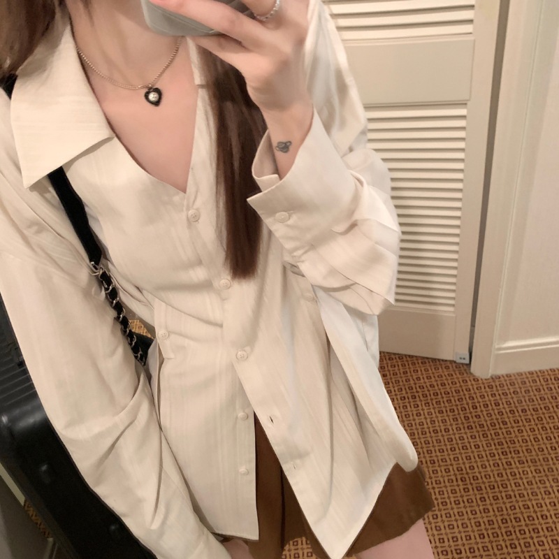 Sun protection shirt control dark texture tight waist shirt design sense niche shirt female 2024 spring and autumn shirt fashion