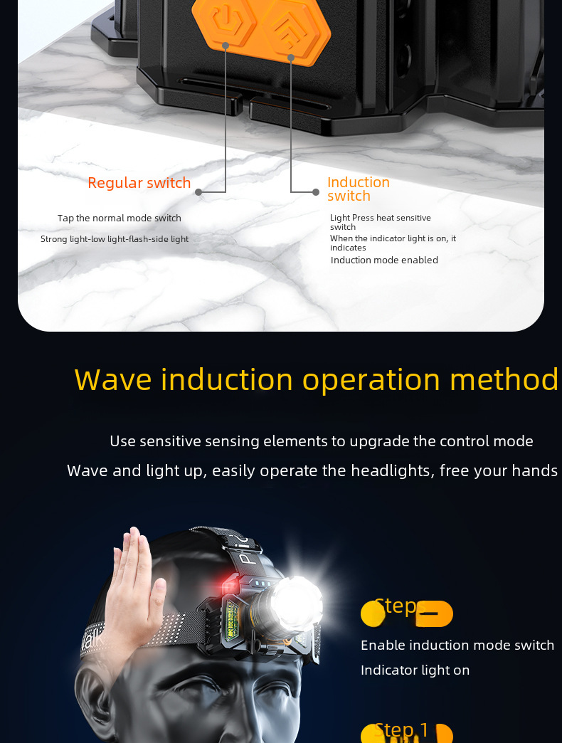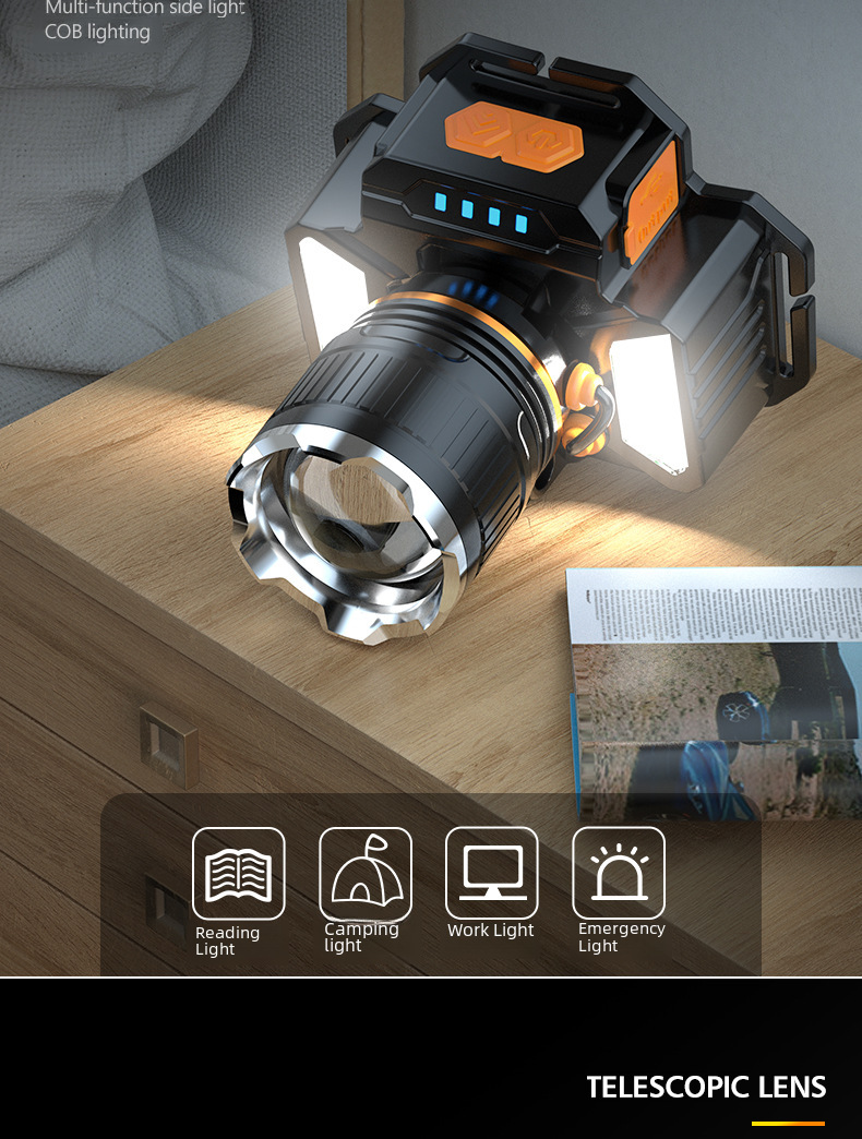 Super bright cross border strong light induction headlight miner s lamp USB charging emergency smart head mounted outdoor lighting P50 headlight