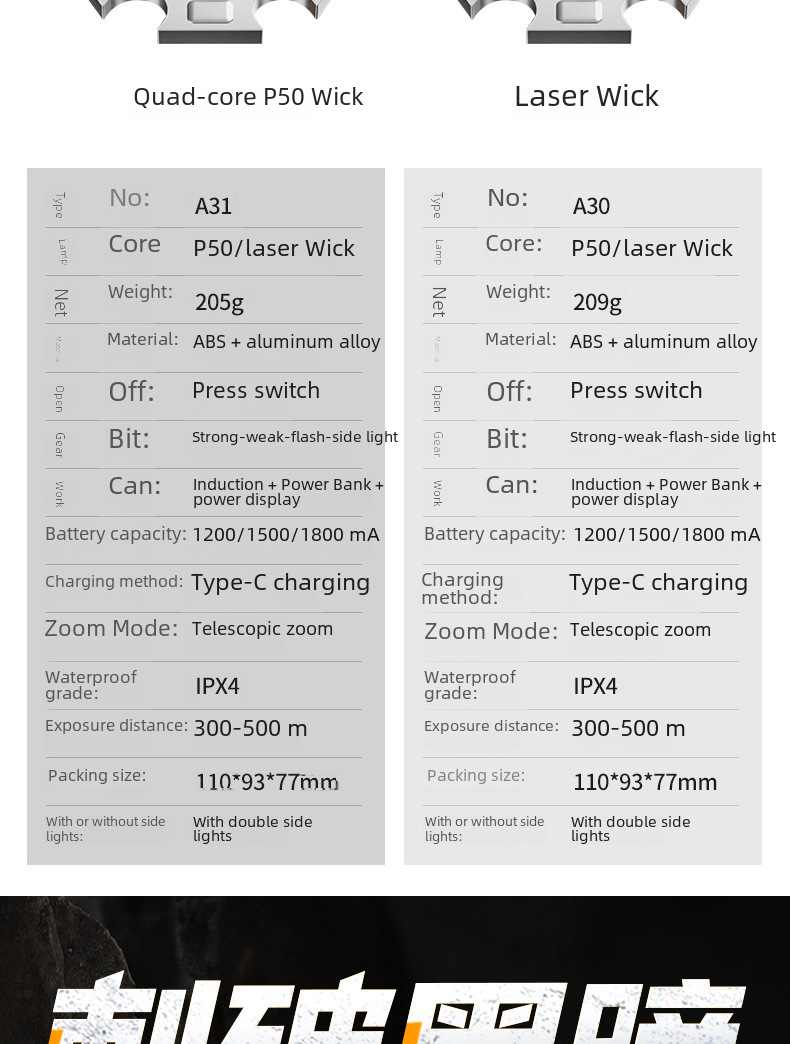 - A30 [P50 Wick 1200*2 batteries plus charging head]]