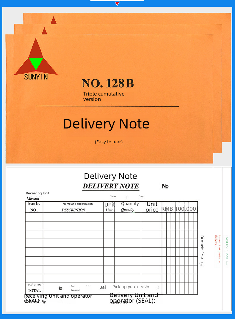 Versatile Usage:These documents are perfect for various supermarket logistics processes, including receipt, warehouse entry, and delivery, making them a versatile choice for all your business needs.
