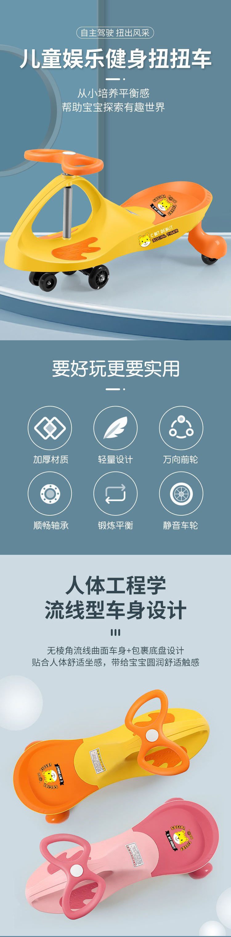 - Tropical Orange + extra large body + pp wheel + music-load 300kg + parent-child ride] tool