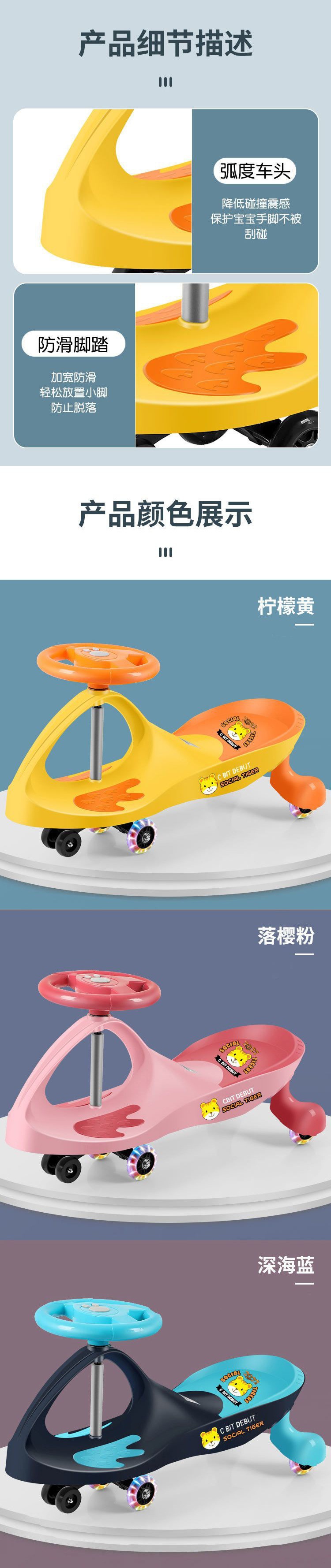 - Vitality blue + extra large body + pp wheel + music-load 300kg + parent-child ride] tool