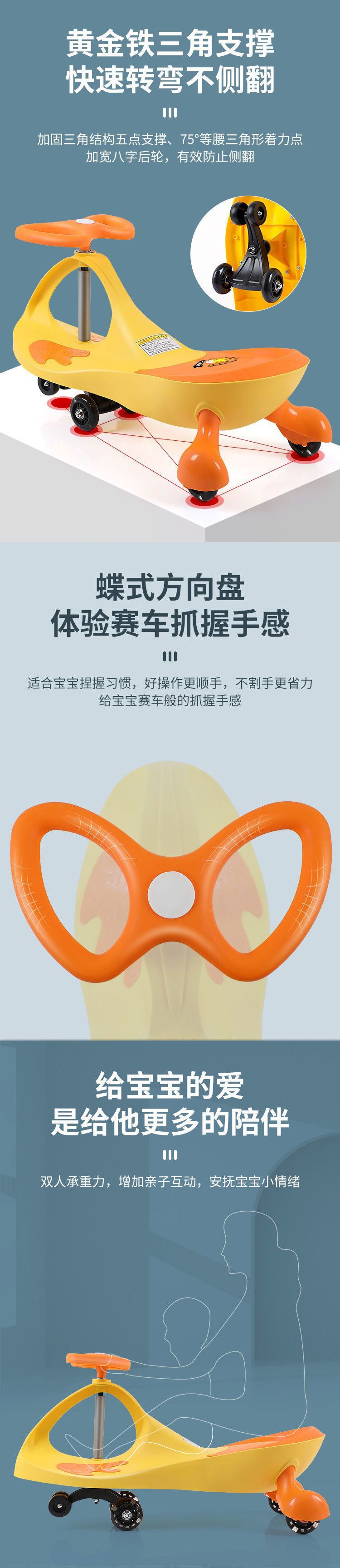 - Tropical Orange + mute flash wheel + music-load 300kg + parent-child ride] tool