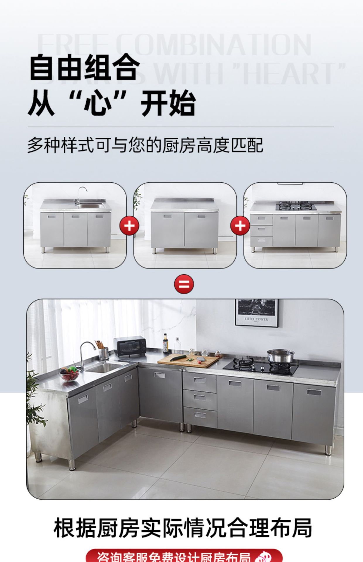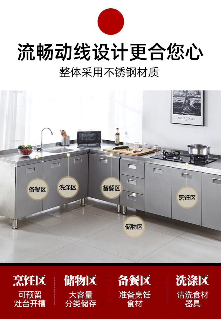 T MT M304 Stainless Steel Kitchen Cabinet Integrated Cabinet Integrated Kitchen Cabinet Rural Household Installation Free Sink Cabinet Simple