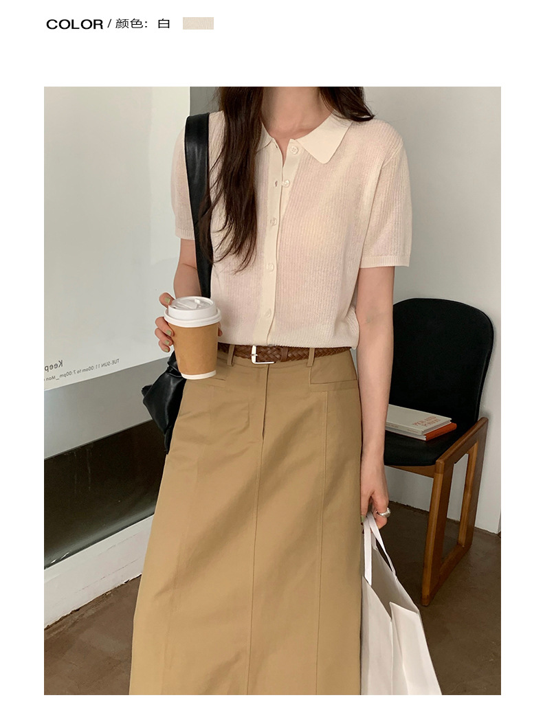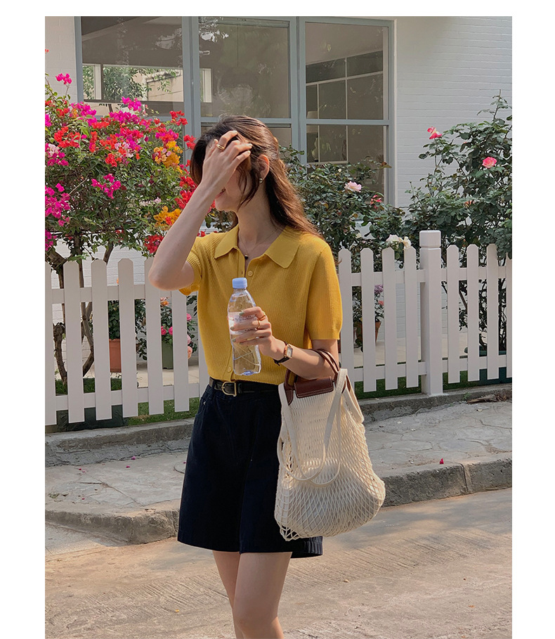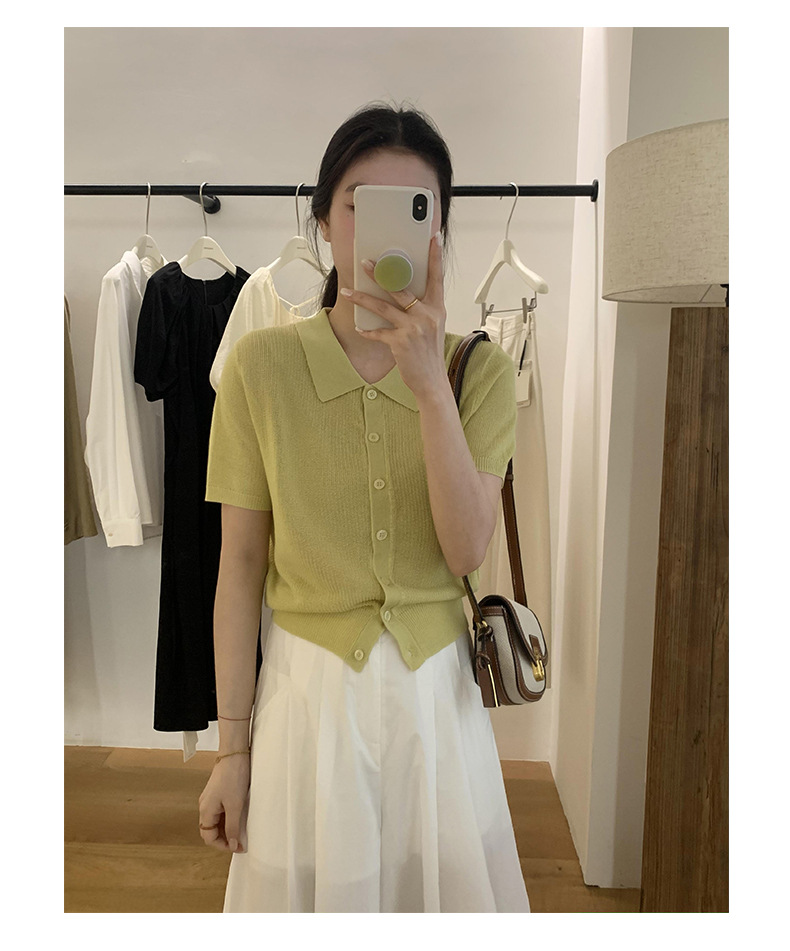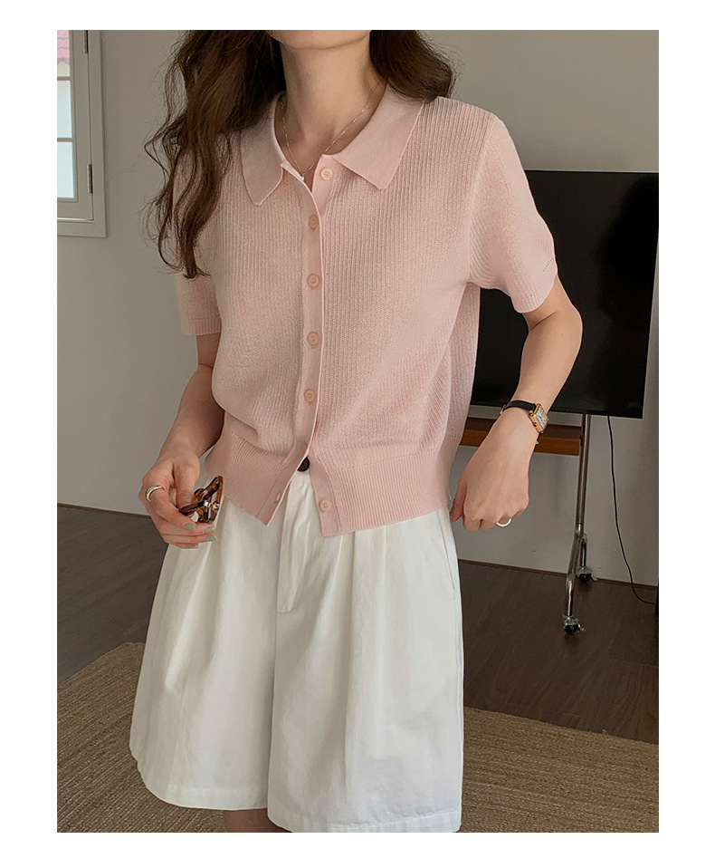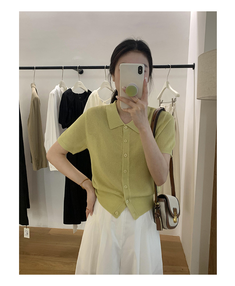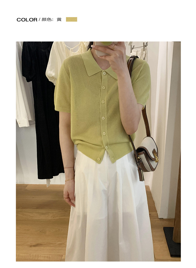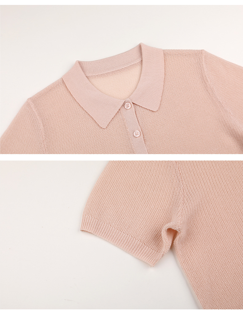 TG Knitted Polo Shirt Women s 2024 Summer New Korean Style Simple Short sleeved Thin Buckle Slimming Top 22455