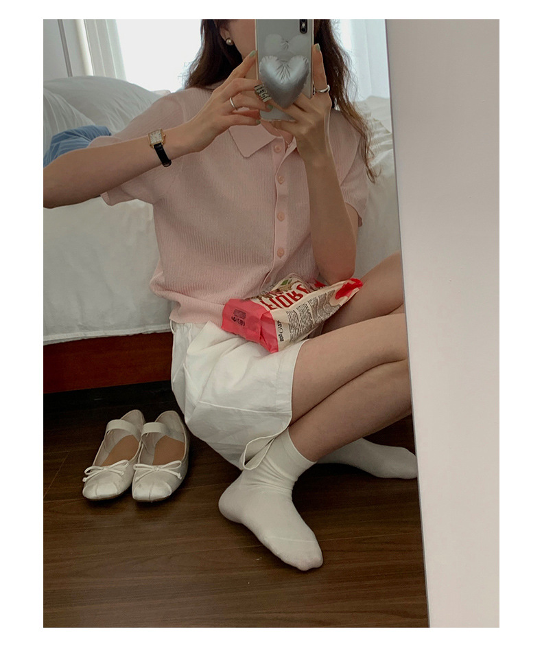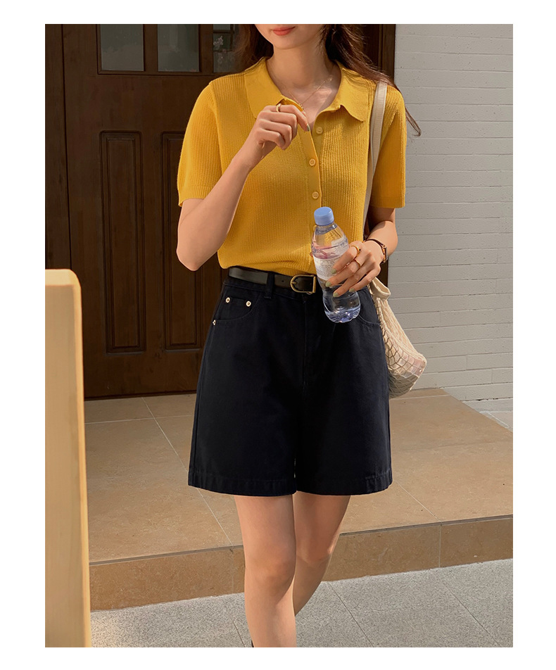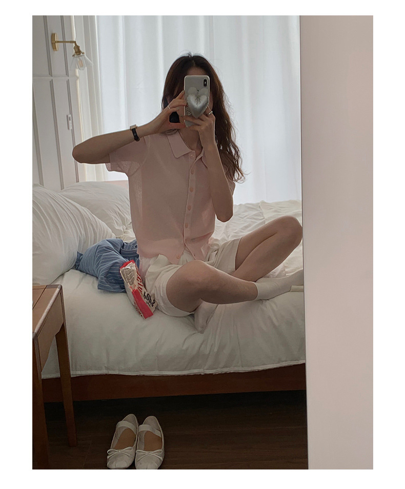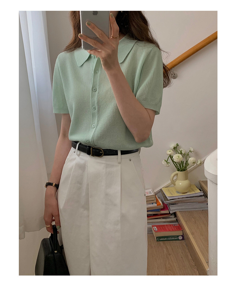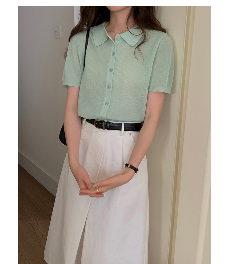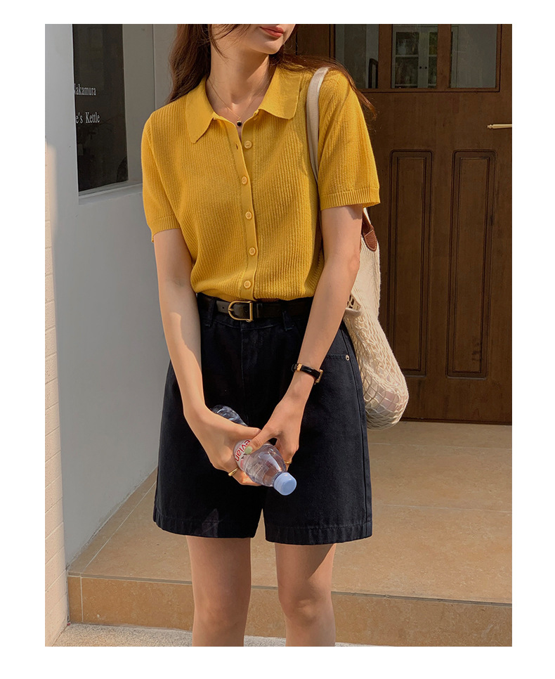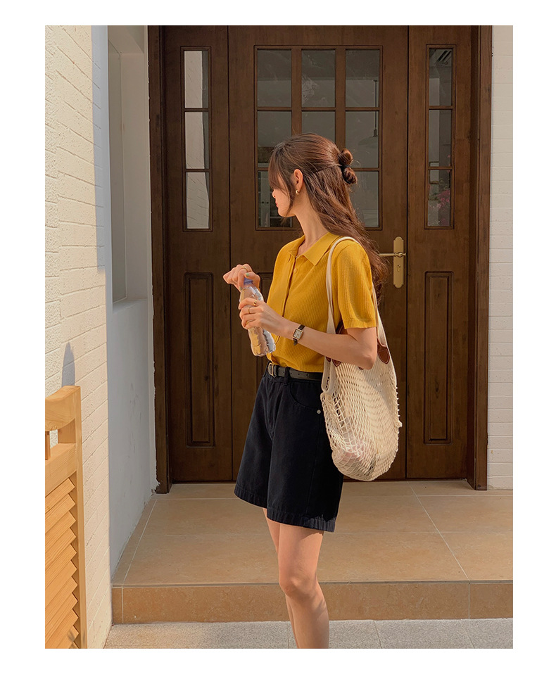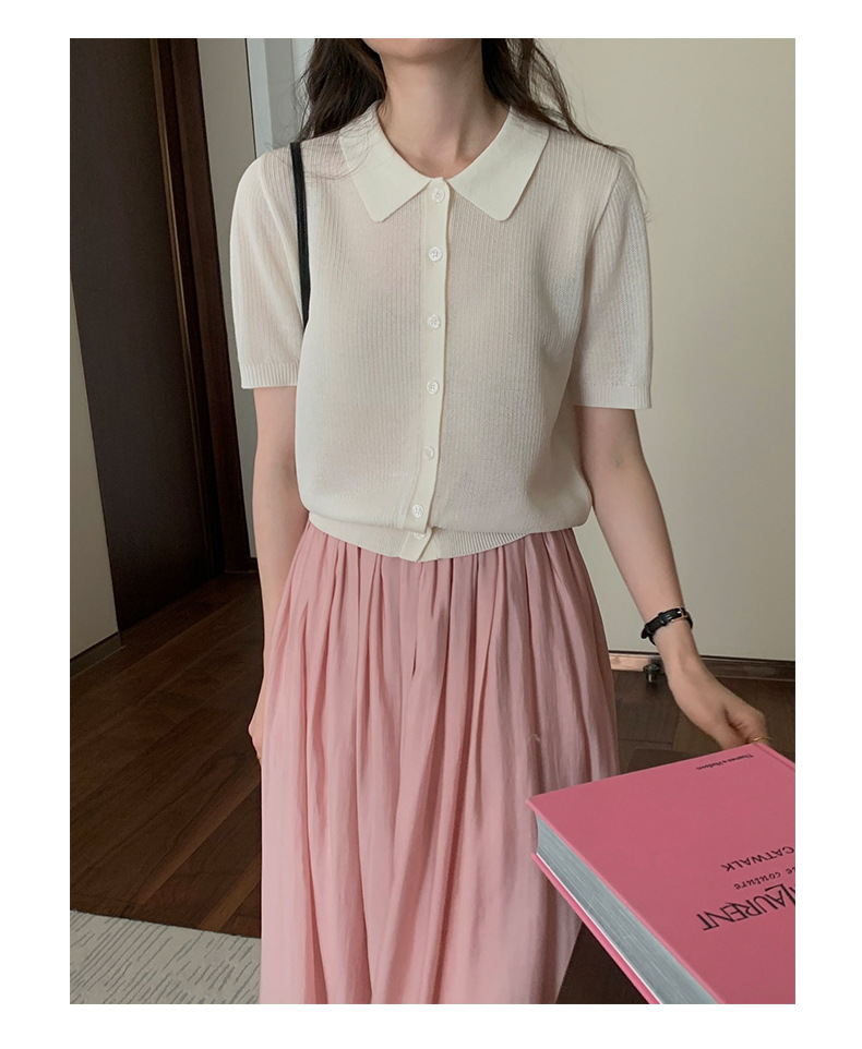TG Knitted Polo Shirt Women s 2024 Summer New Korean Style Simple Short sleeved Thin Buckle Slimming Top 22455