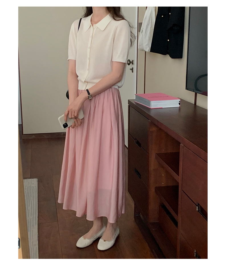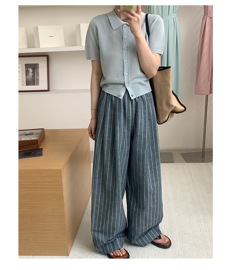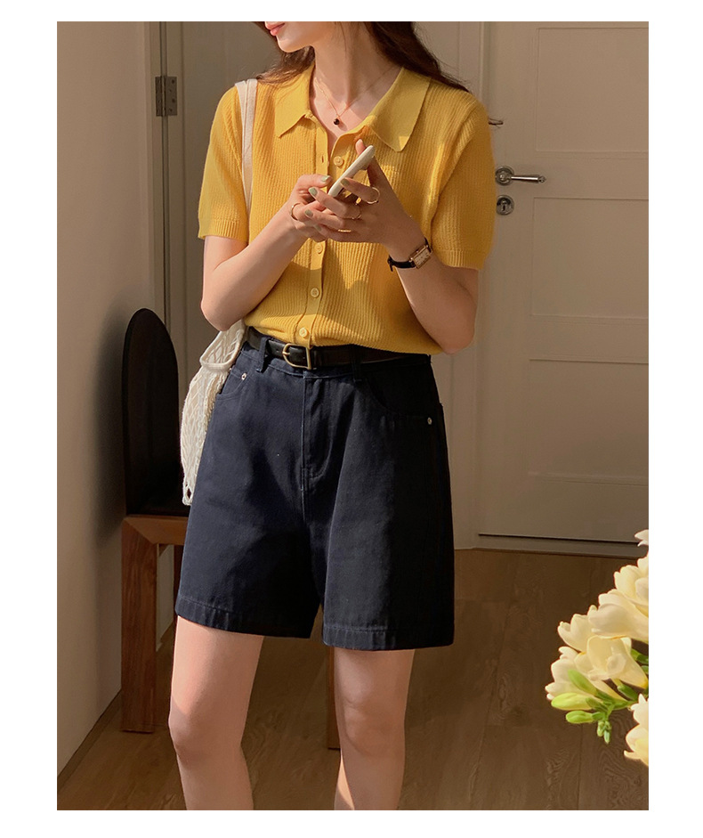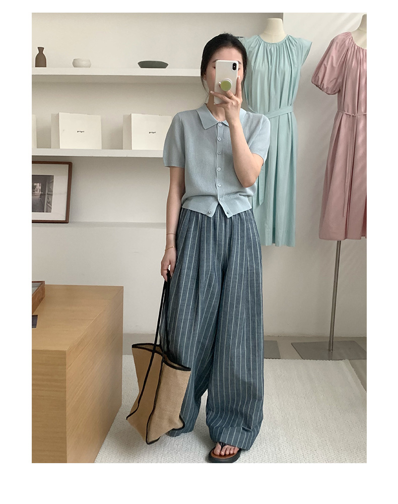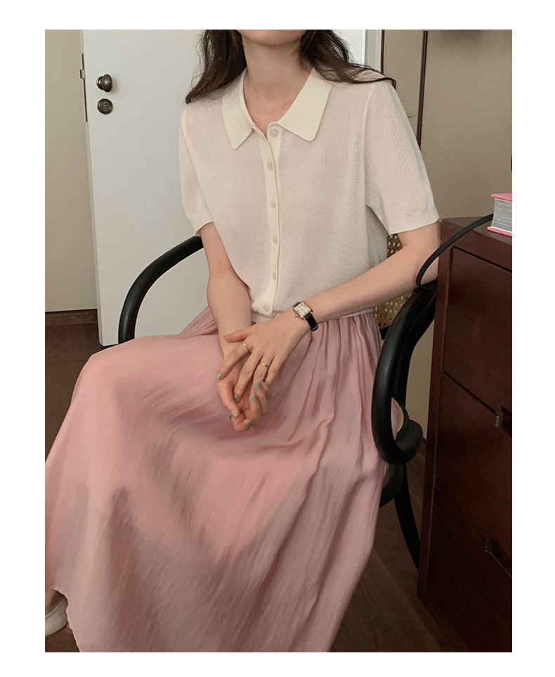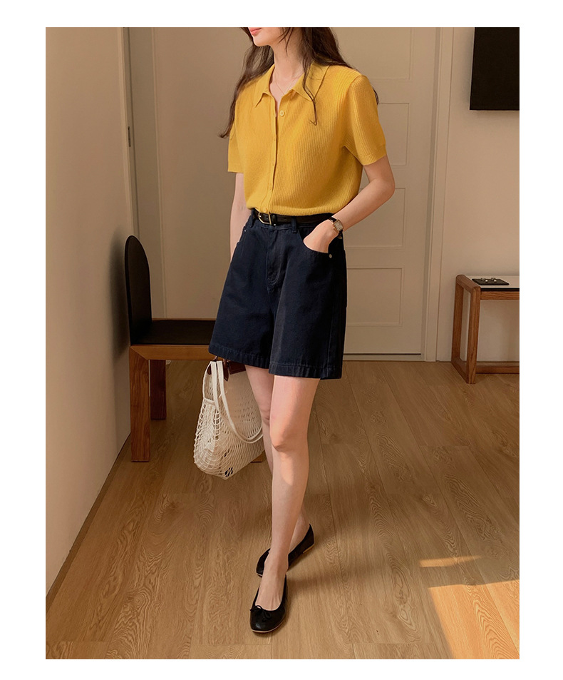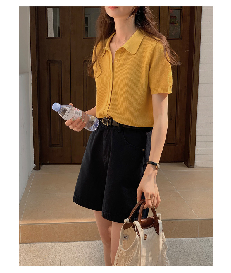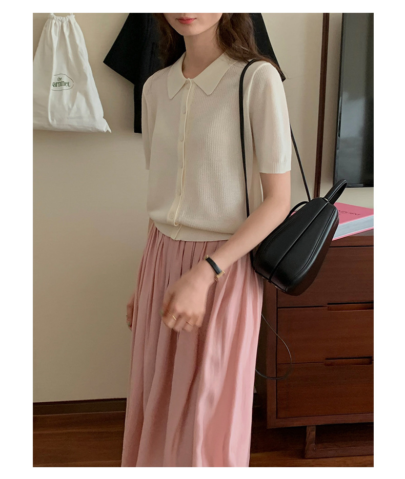 TG Knitted Polo Shirt Women s 2024 Summer New Korean Style Simple Short sleeved Thin Buckle Slimming Top 22455