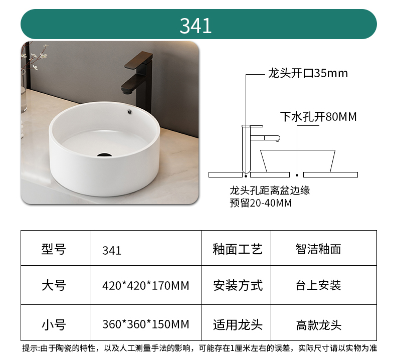 Table Basin Wash Basin Toilet Ceramic Washbasin Art Small Table Basin Balcony Square Round Single sided Basin Lan Qian
