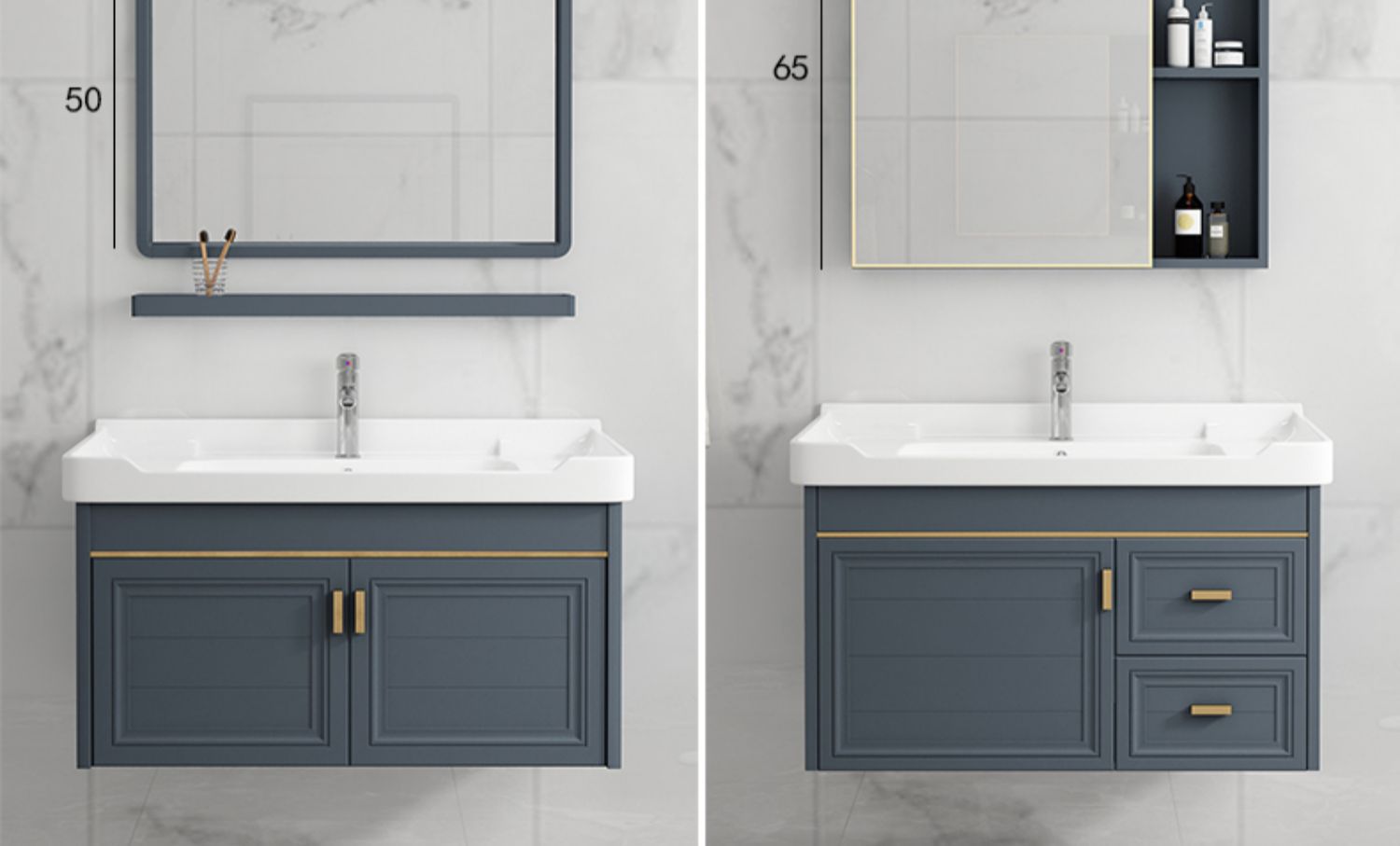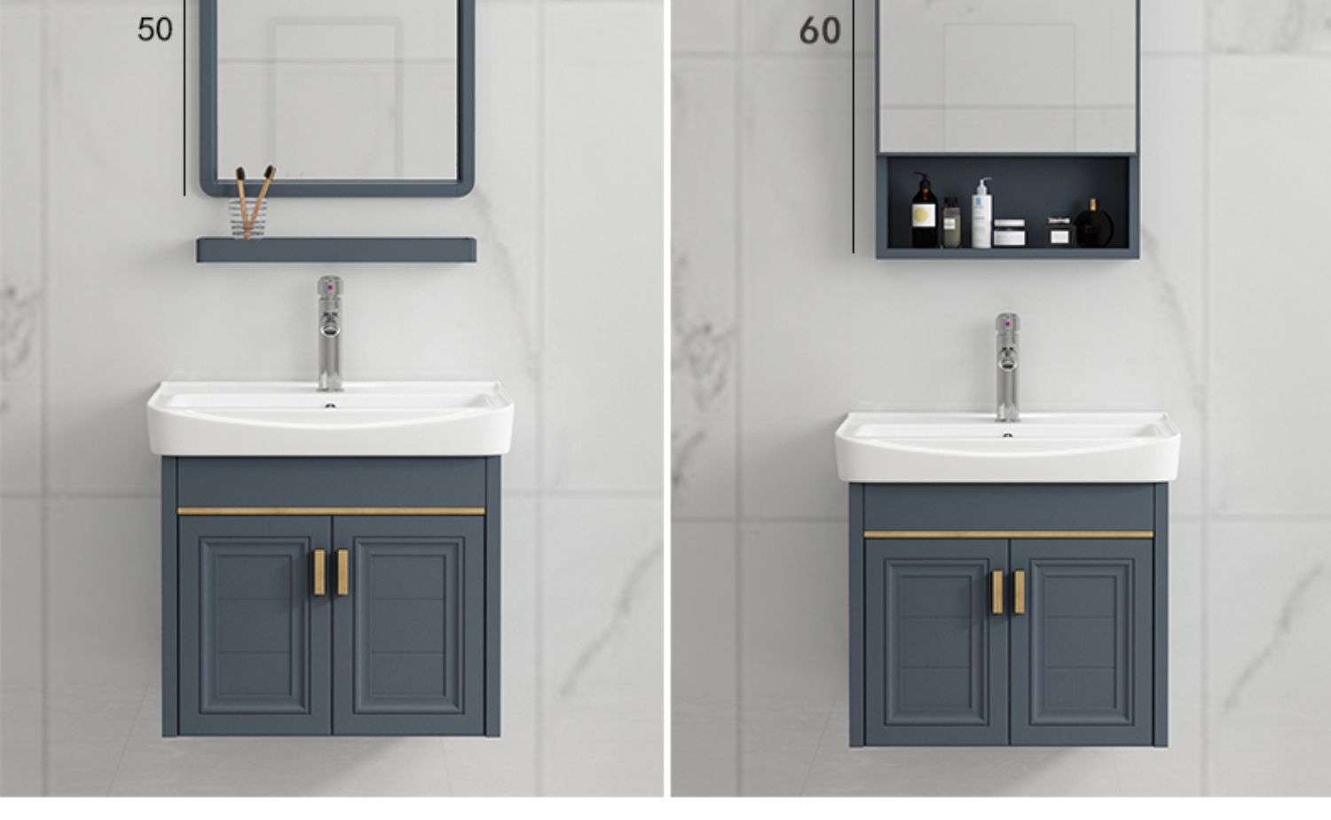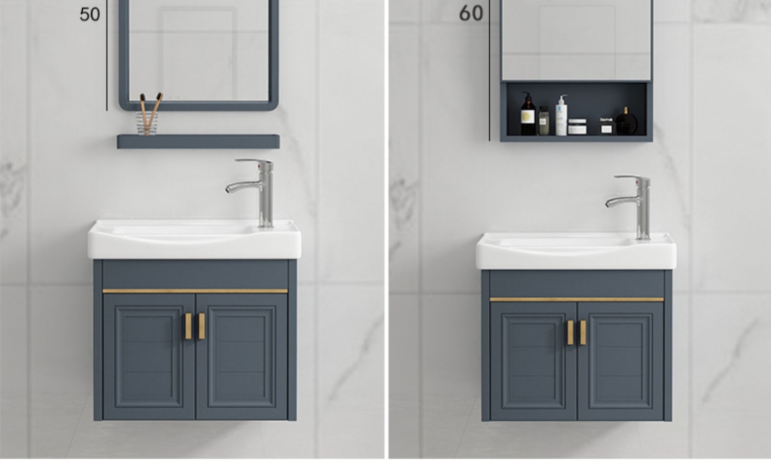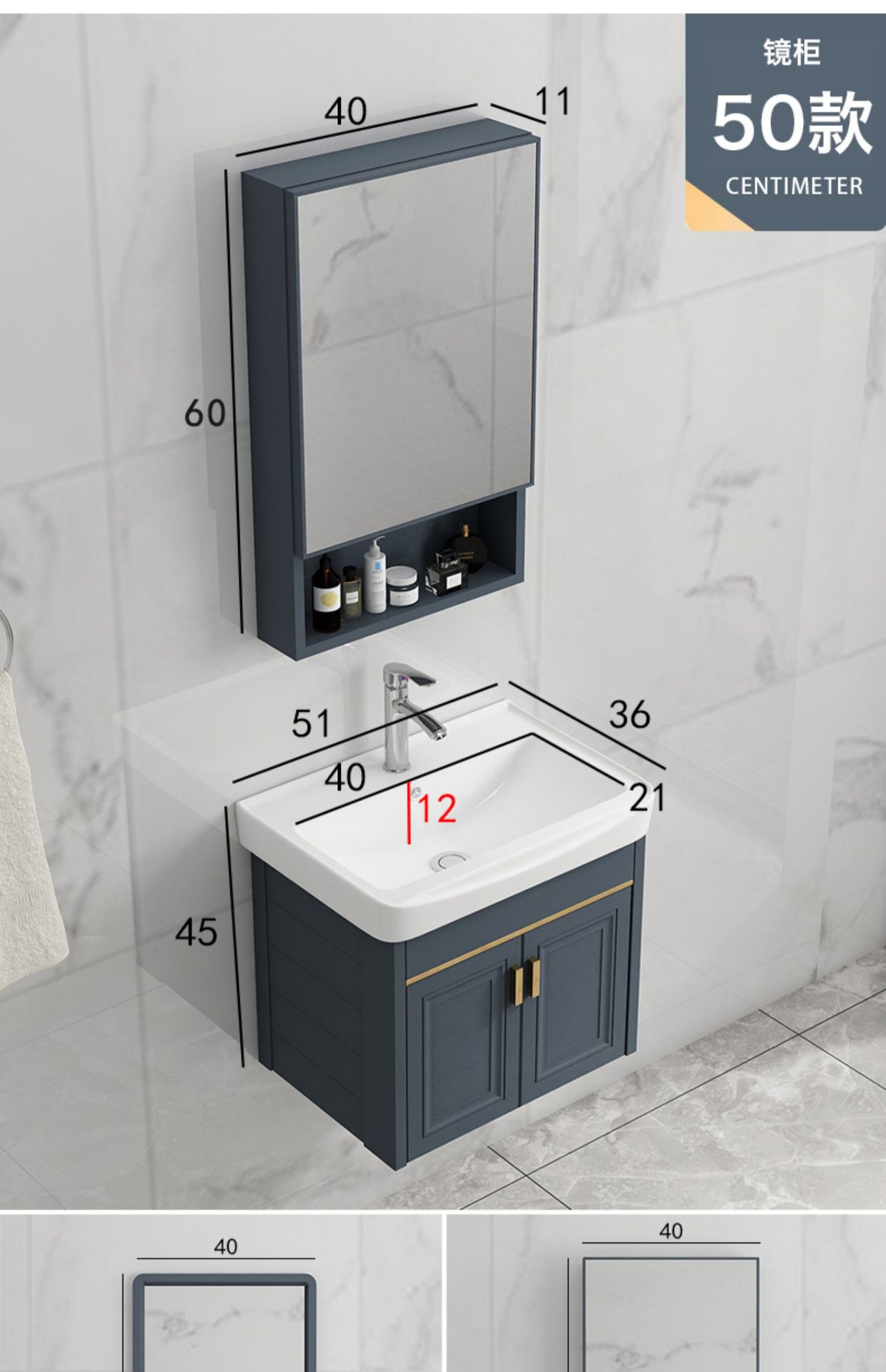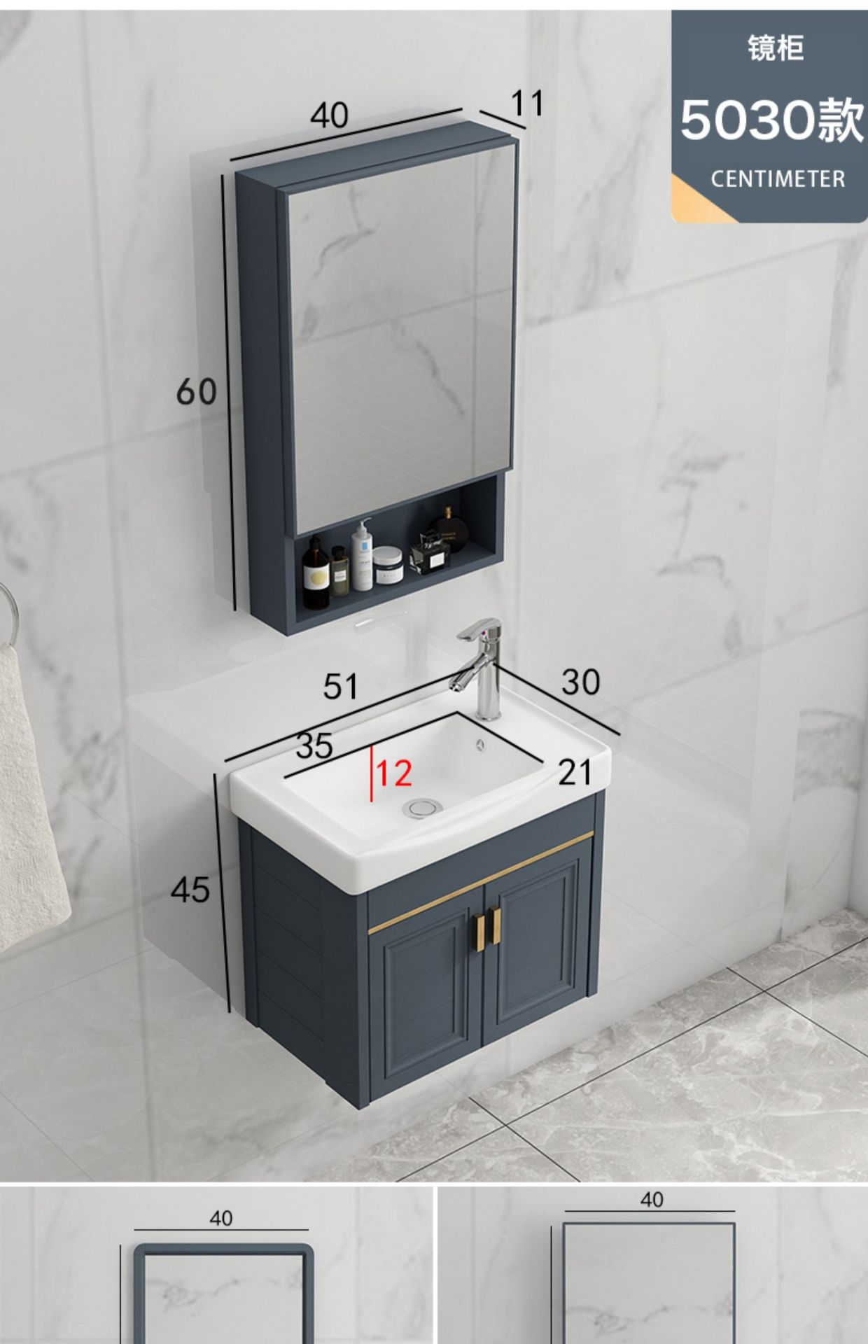 - 50 blue cabinet with door + Full Set + mirror cabinet silver faucet blue mirror cabinet