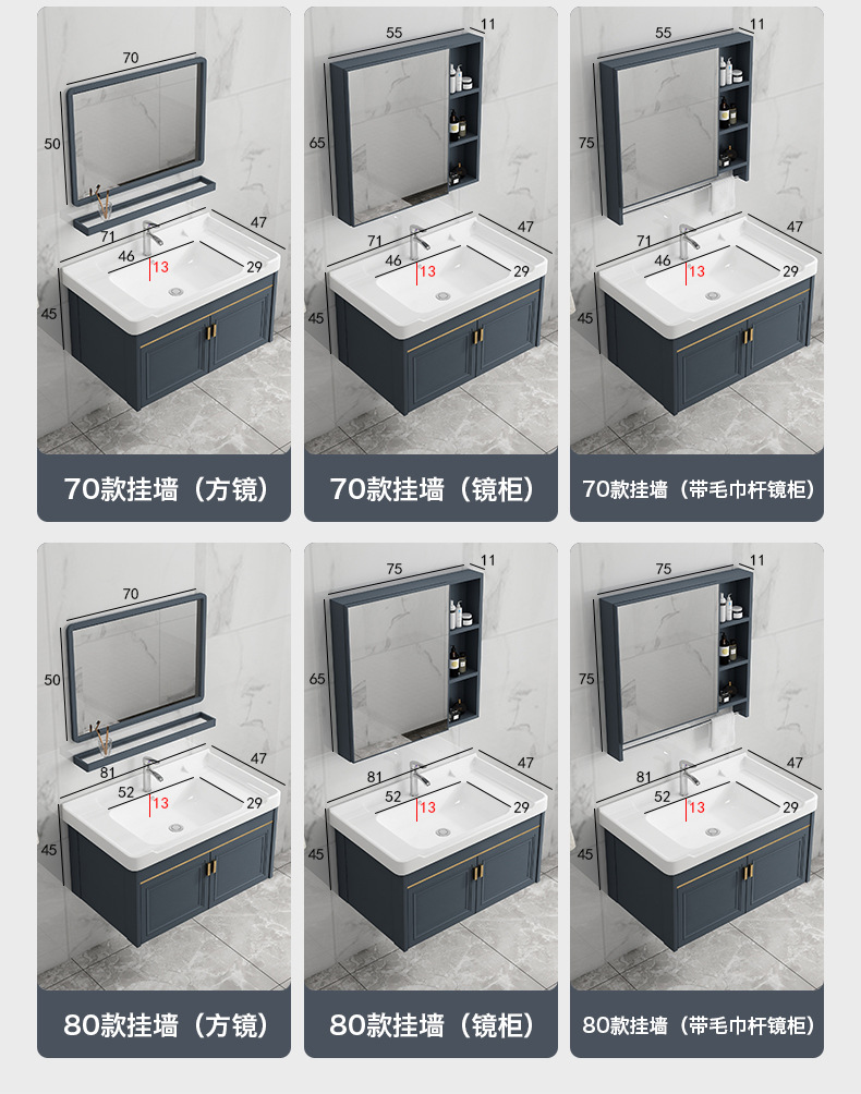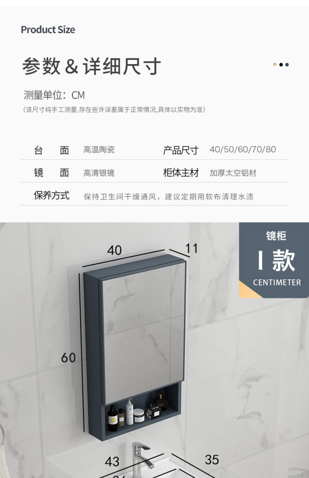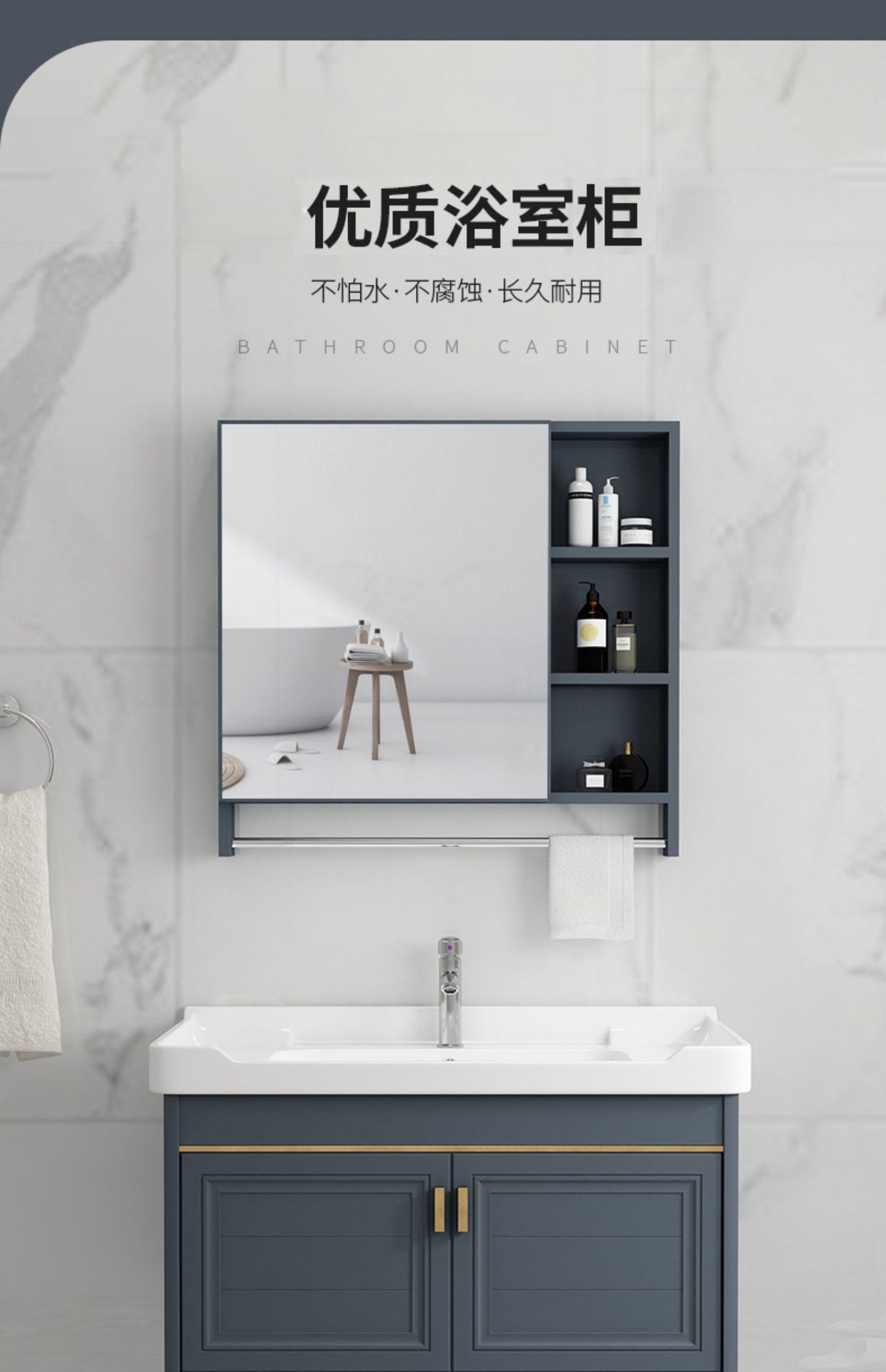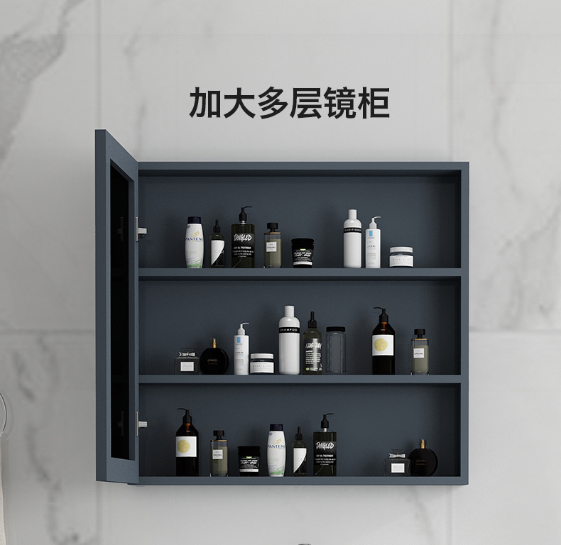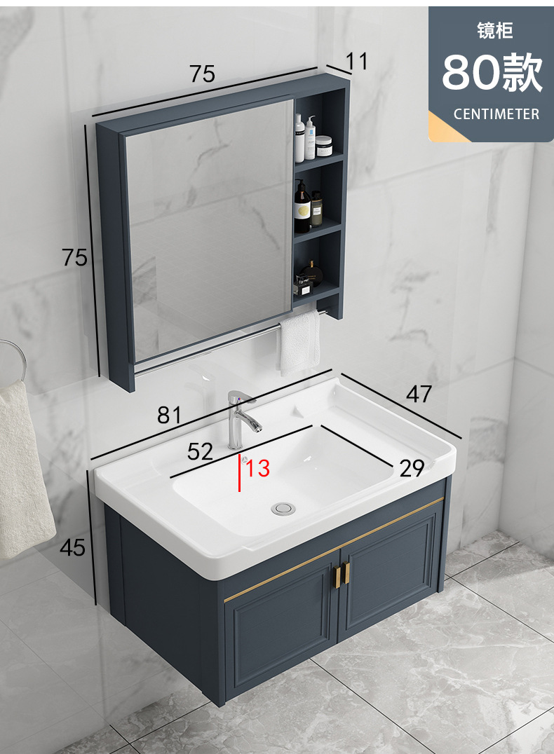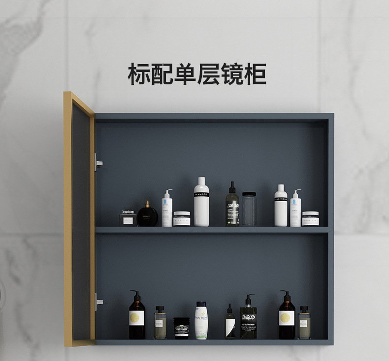 - 80 blue cabinet drawer with door + full set of mirror cabinet drawer single-layer mirror cabinet