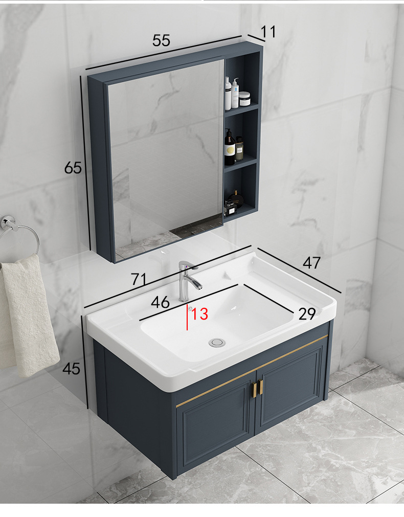 - 7047 blue cabinet with door + full set of single-layer mirror cabinet towel bar remarks