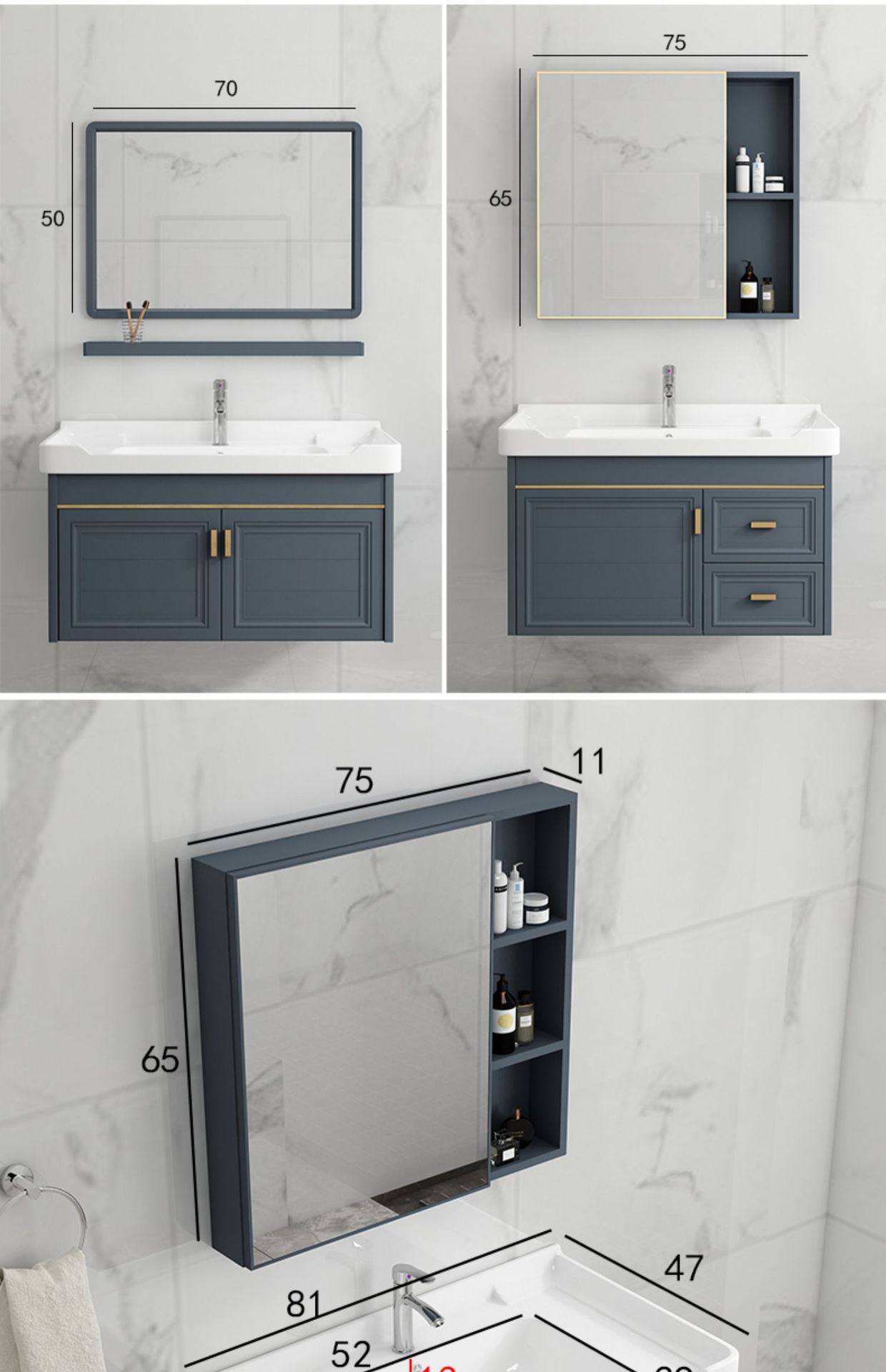 - 70 models with door Blue Cabinet rock plate + full set mirror cabinet black rock plate black round faucet
