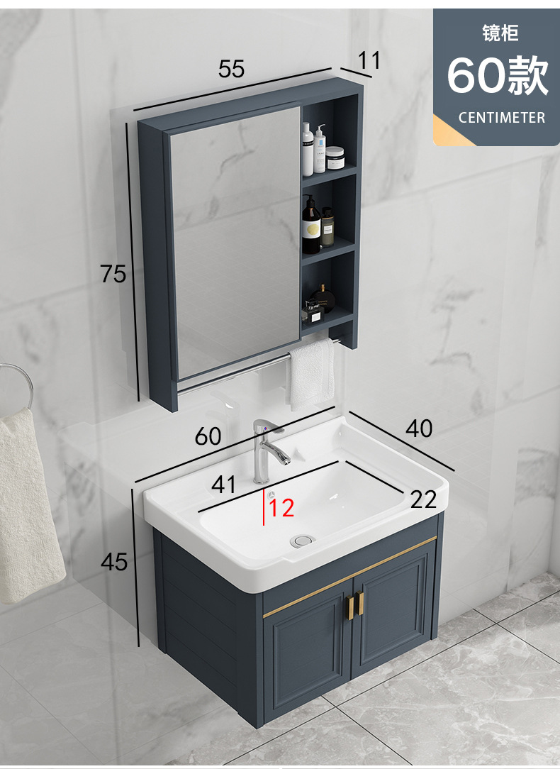 - 60 blue cabinet with door + full set of single-layer mirror cabinet towel bar remarks
