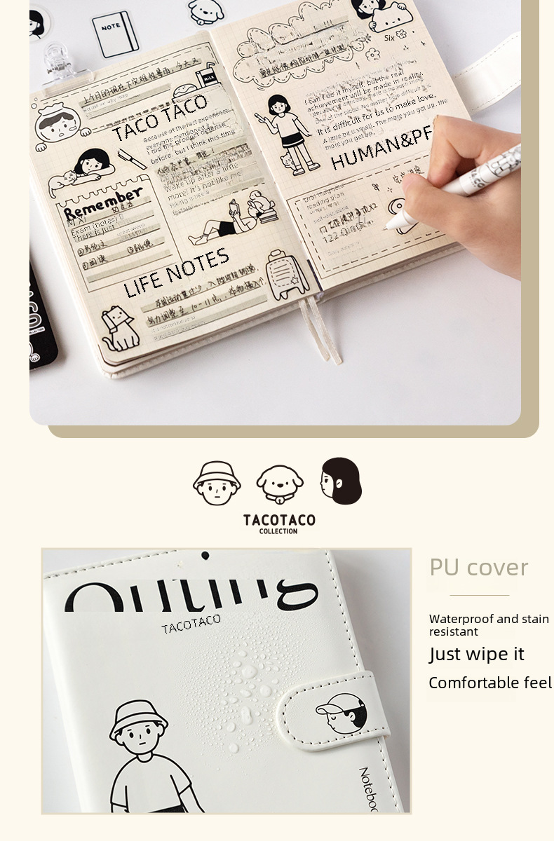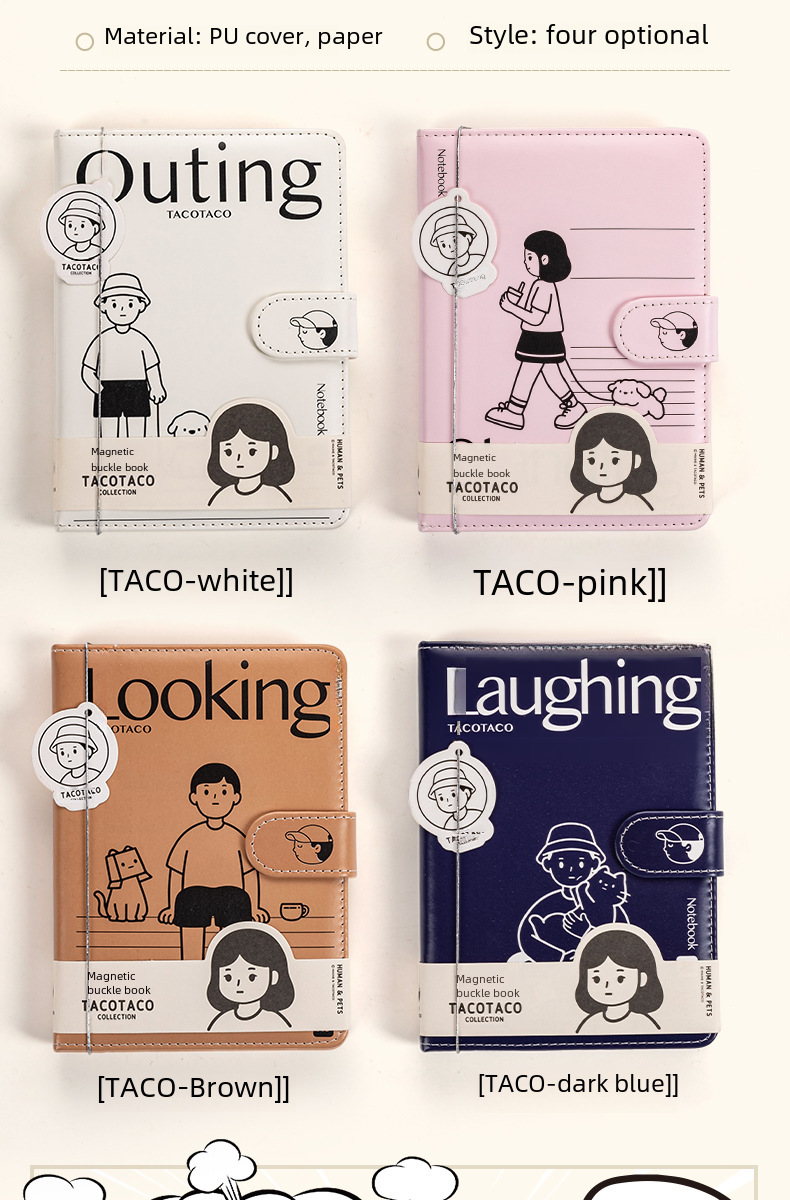 Taco Magnetic Buckle Book Illustration Color Page Notebook Book Horizontal Line Magnetic Buckle Cartoon Journal Book Simple Hand Book Imitation Leather