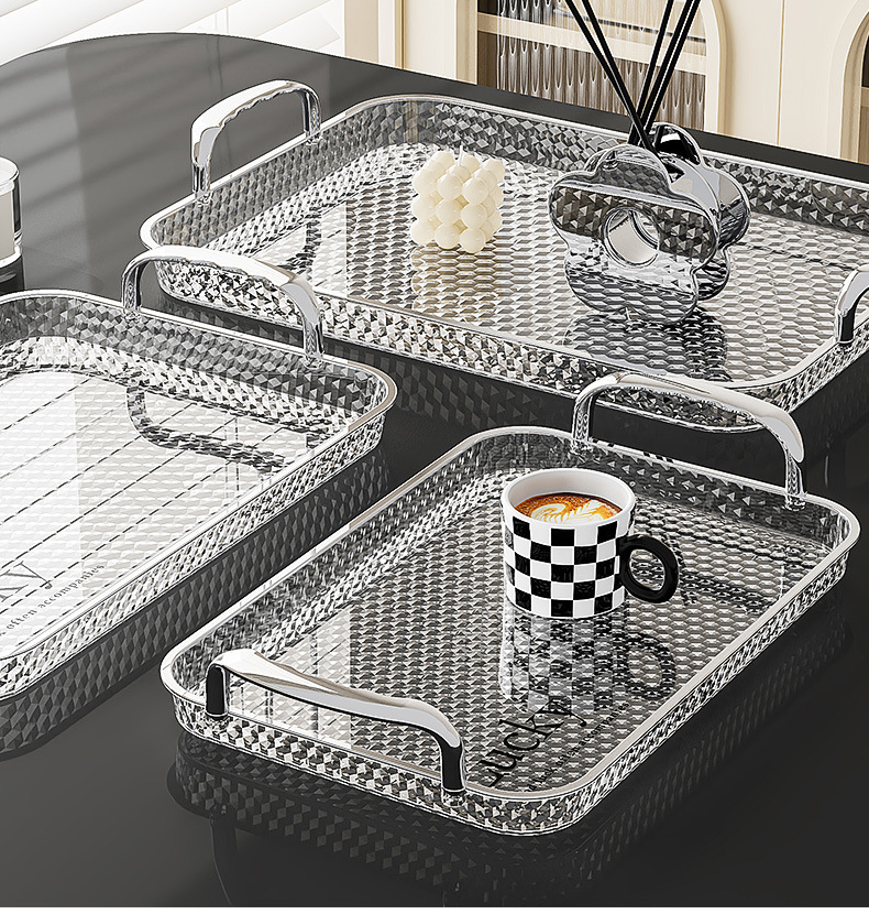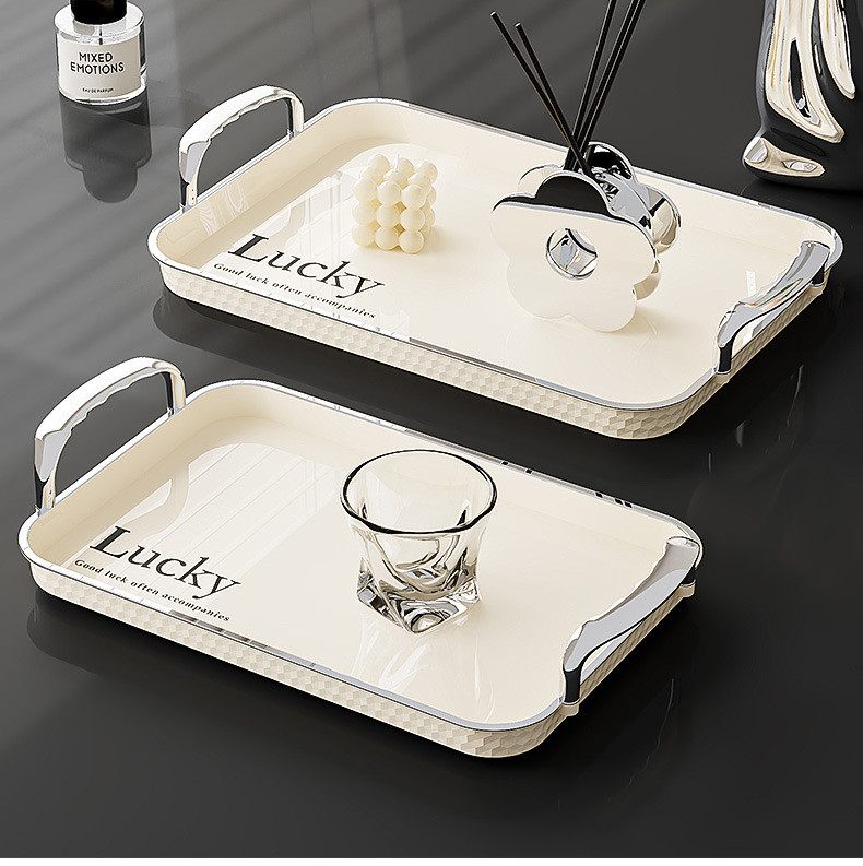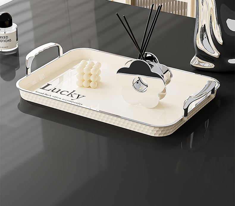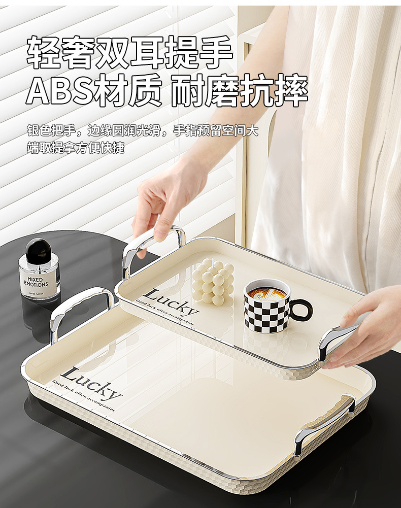 Tea Tray Living Room Household High-end Rectangular Tray for Water Cup Tea Cup Storage Tray Light Luxury Plastic Fruit Food Tray
