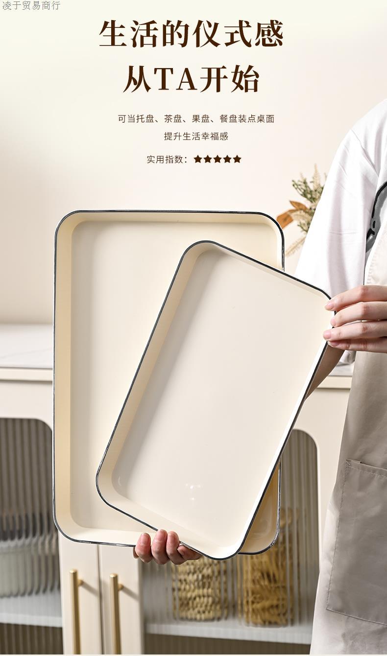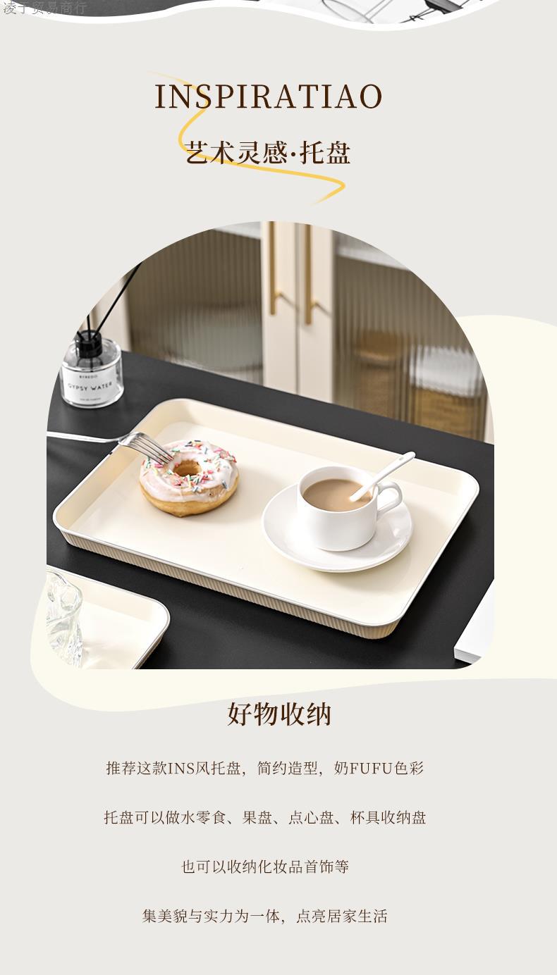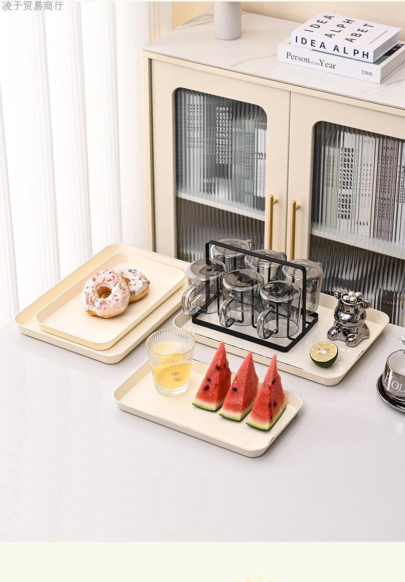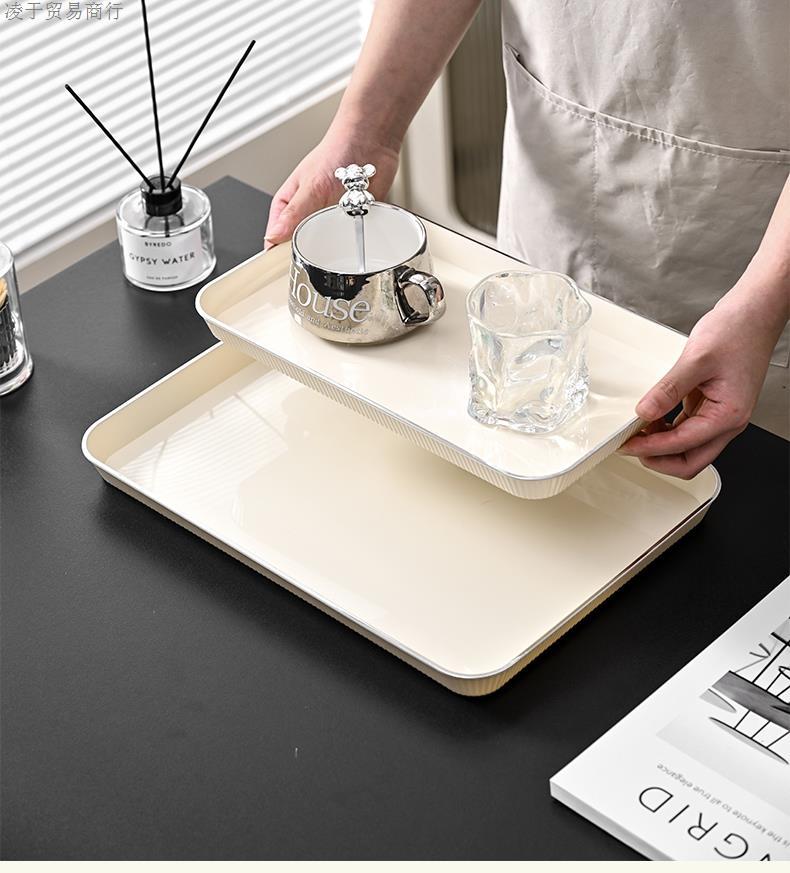 Tea Tray Tray Rectangular Plastic Household Living Room Tea Cup Water Cup Plate Fruit Snack Storage Plate Ins Style