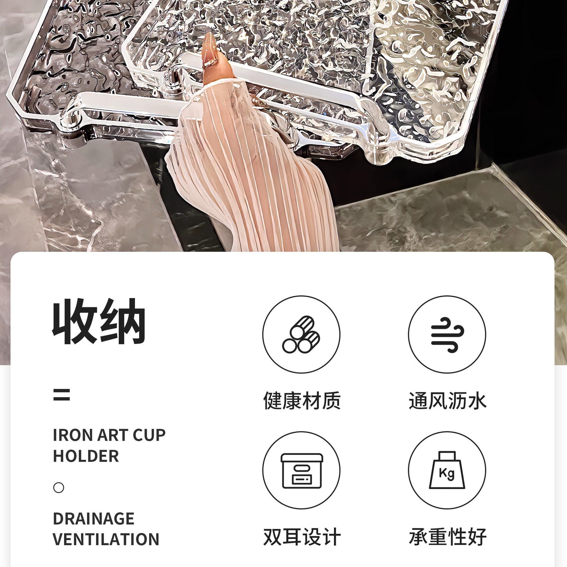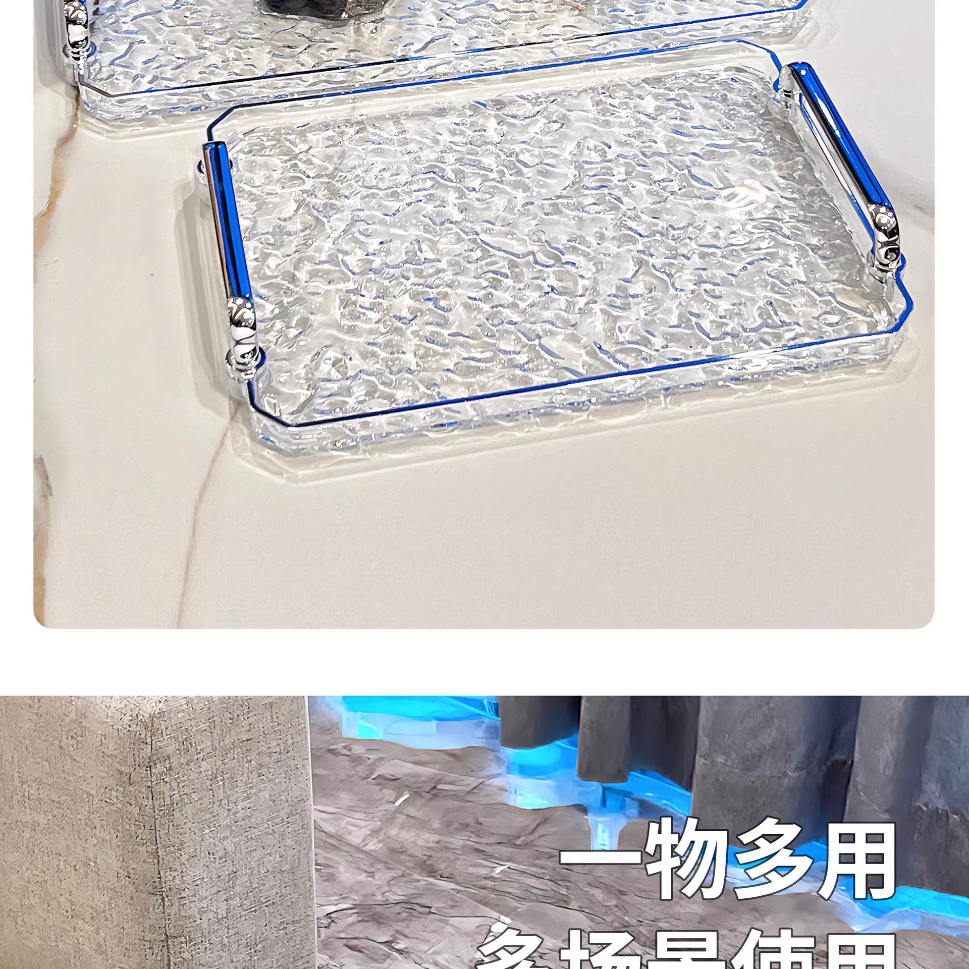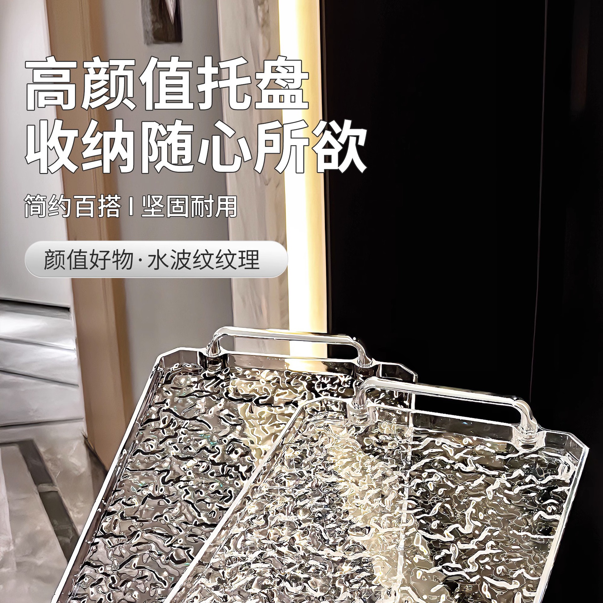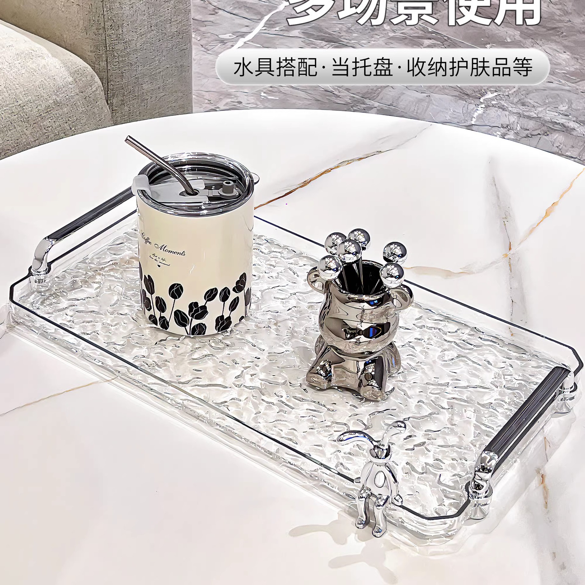 Tea tray light luxury high-end 2023 new Cup rectangular tray household transparent beauty salon living room coffee table