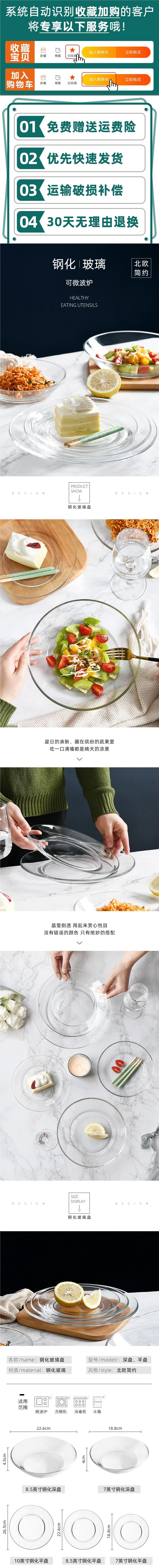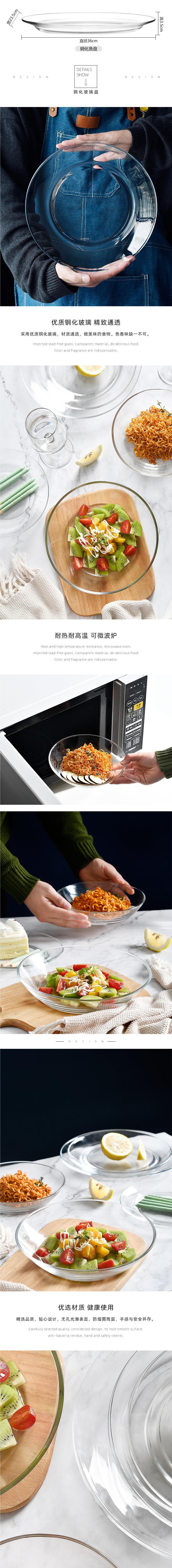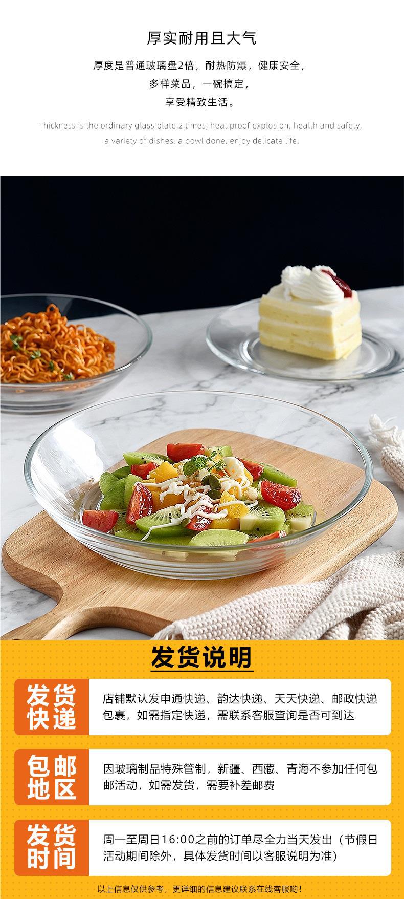 Tempered glass plate for microwave oven household heat-resistant dish fruit plate transparent dish breakfast salad tableware
