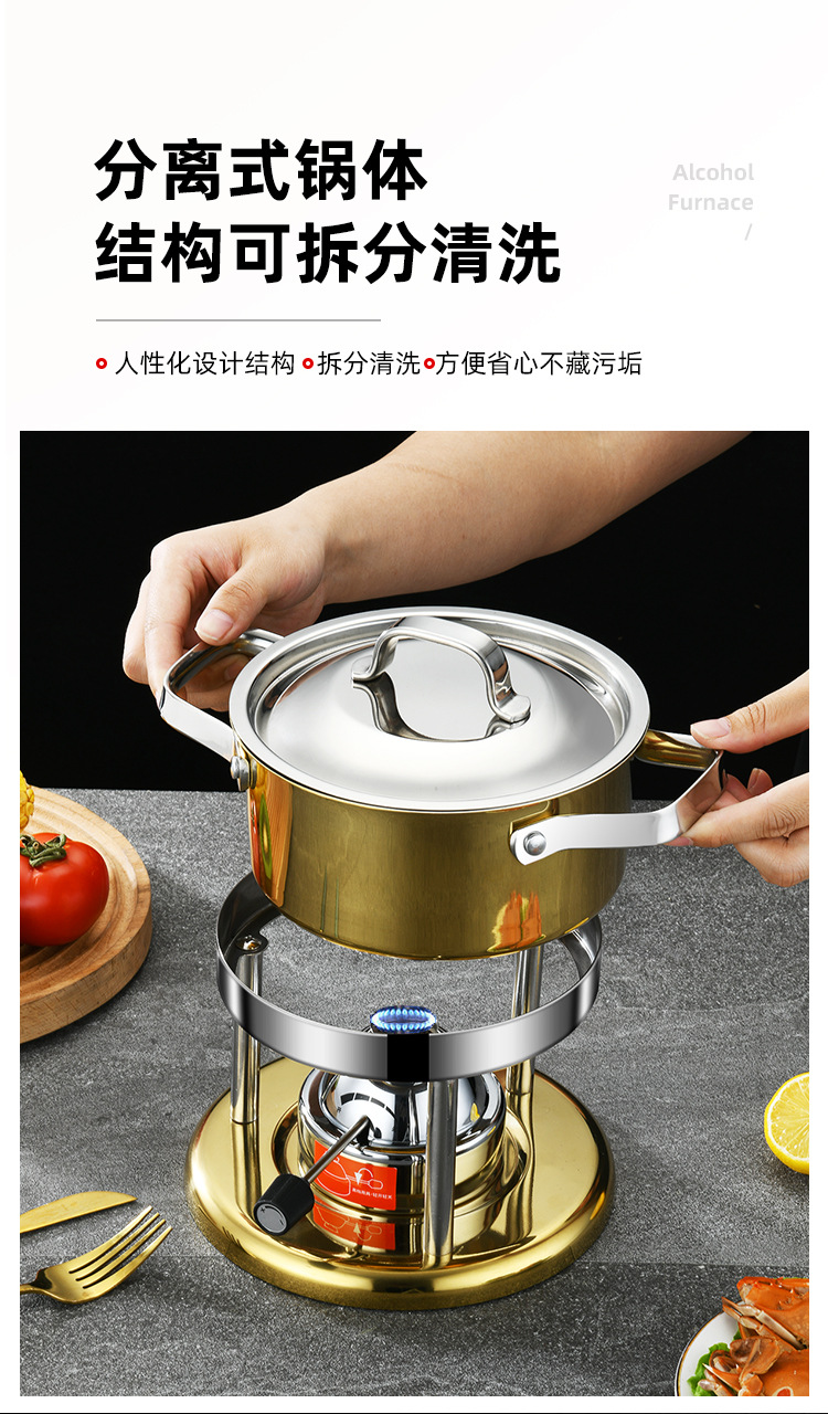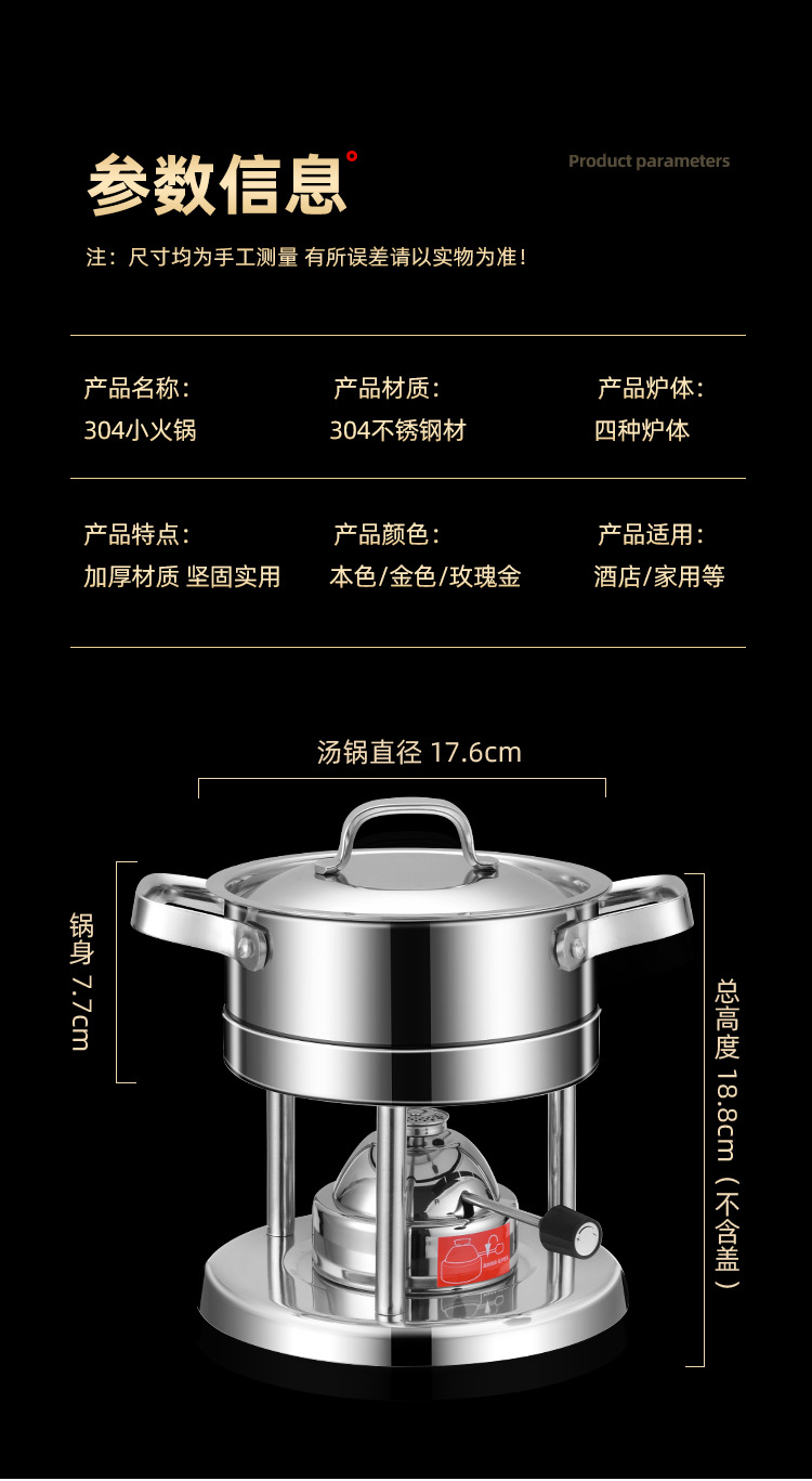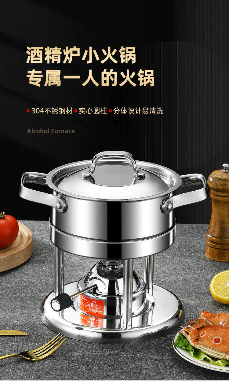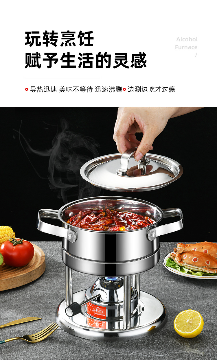 Thickened 304 Stainless Steel Inflatable Small Hot Pot Alcohol Stove Adjustable Small Hot Pot Special Pot Single Stove Commercial