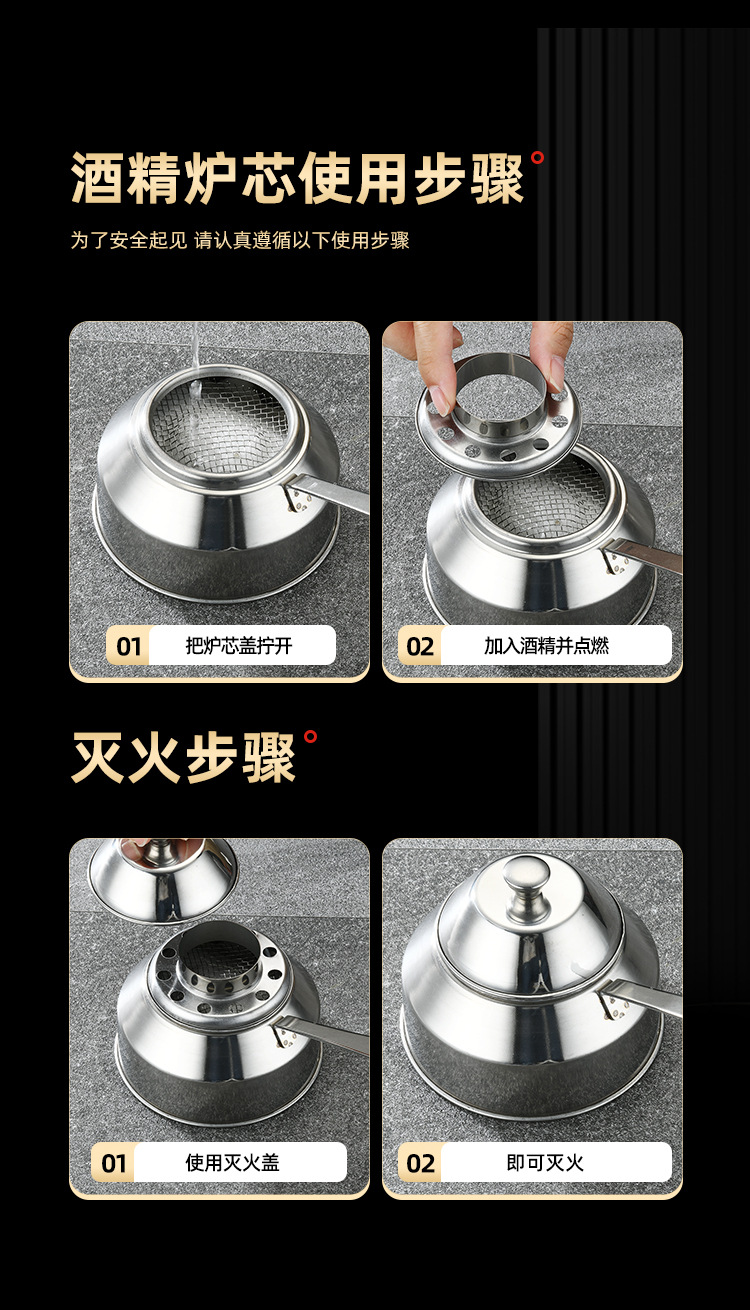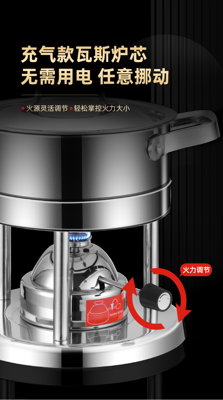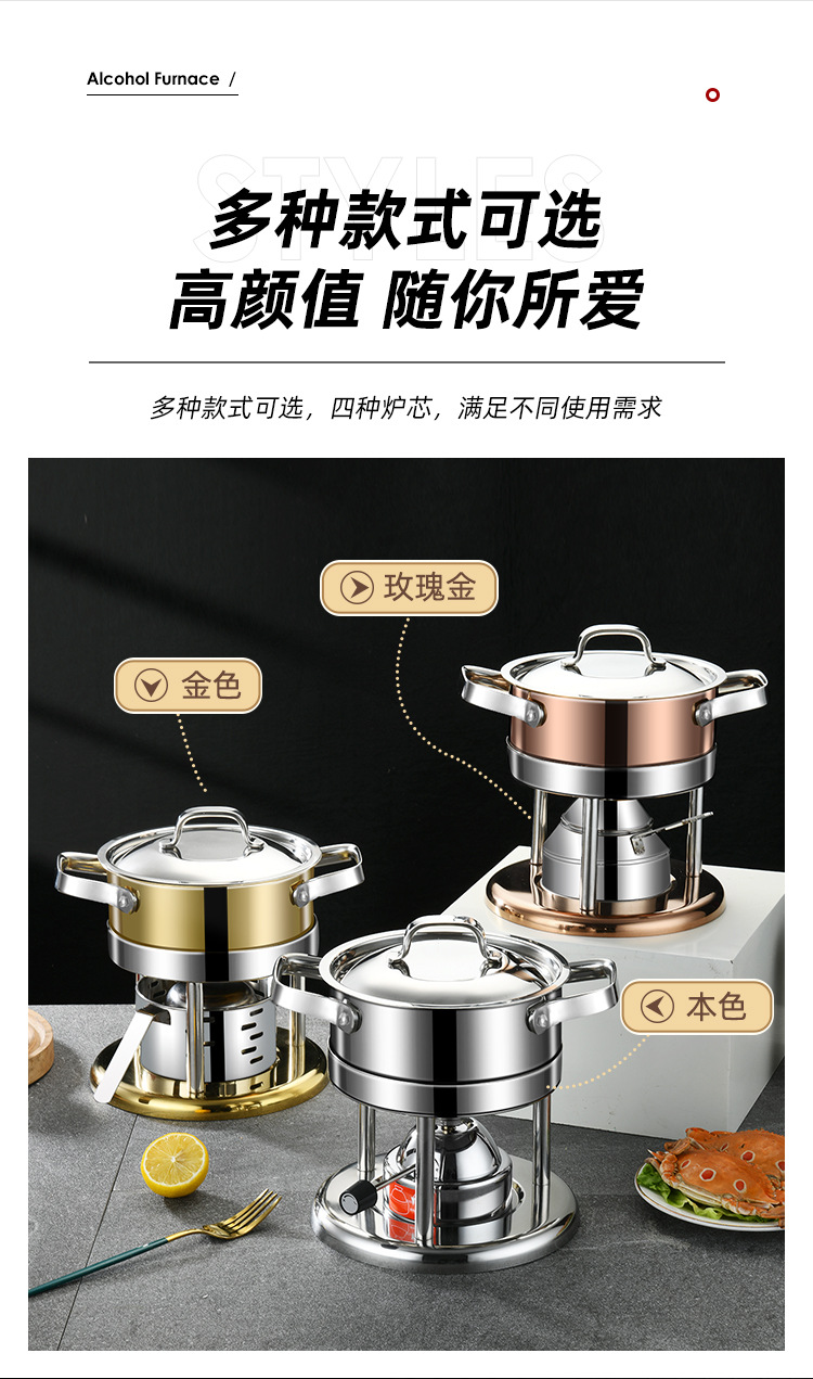 Thickened 304 Stainless Steel Inflatable Small Hot Pot Alcohol Stove Adjustable Small Hot Pot Special Pot Single Stove Commercial