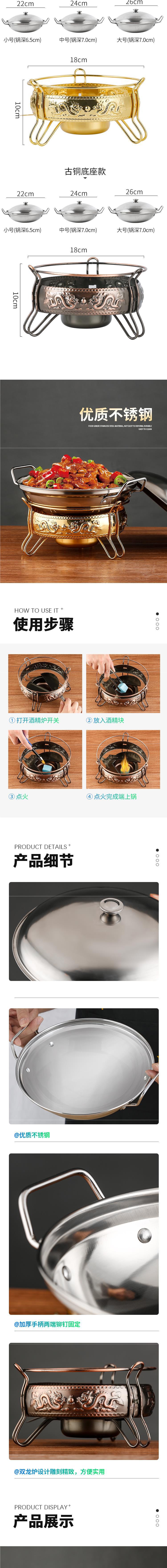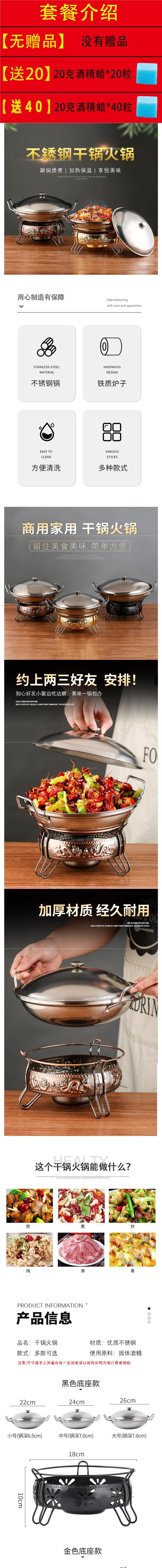 Thickened Stainless Steel Alcohol Stove Small Hot Pot Household Restaurant Dry Pot Solid Liquid Dormitory Alcohol Pot suit