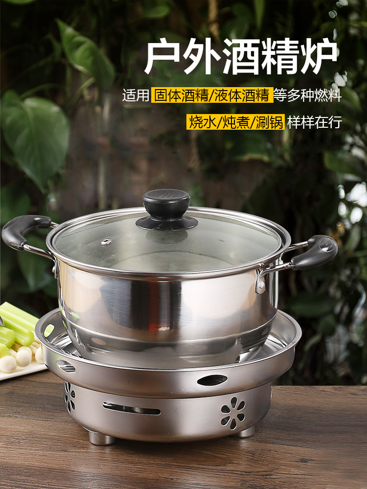 Thickened Stainless Steel Windproof Alcohol Stove Small Hot Pot Liquid Solid Household Student Dormitory Dormitory Alcohol Pot Manufacturers