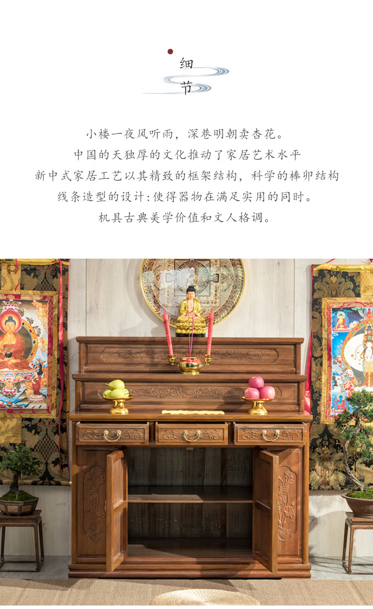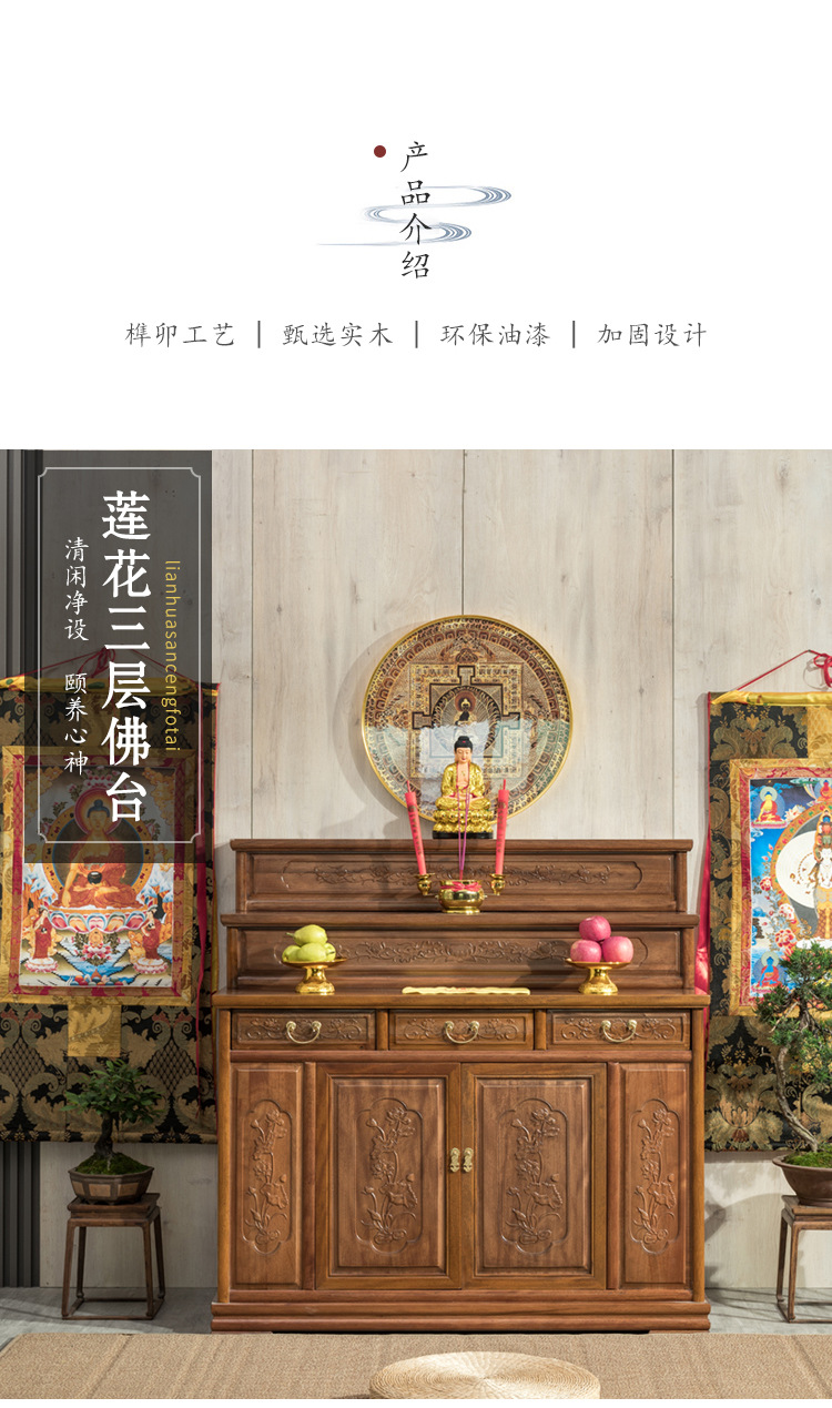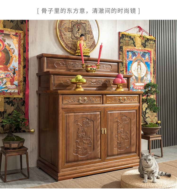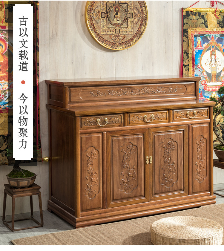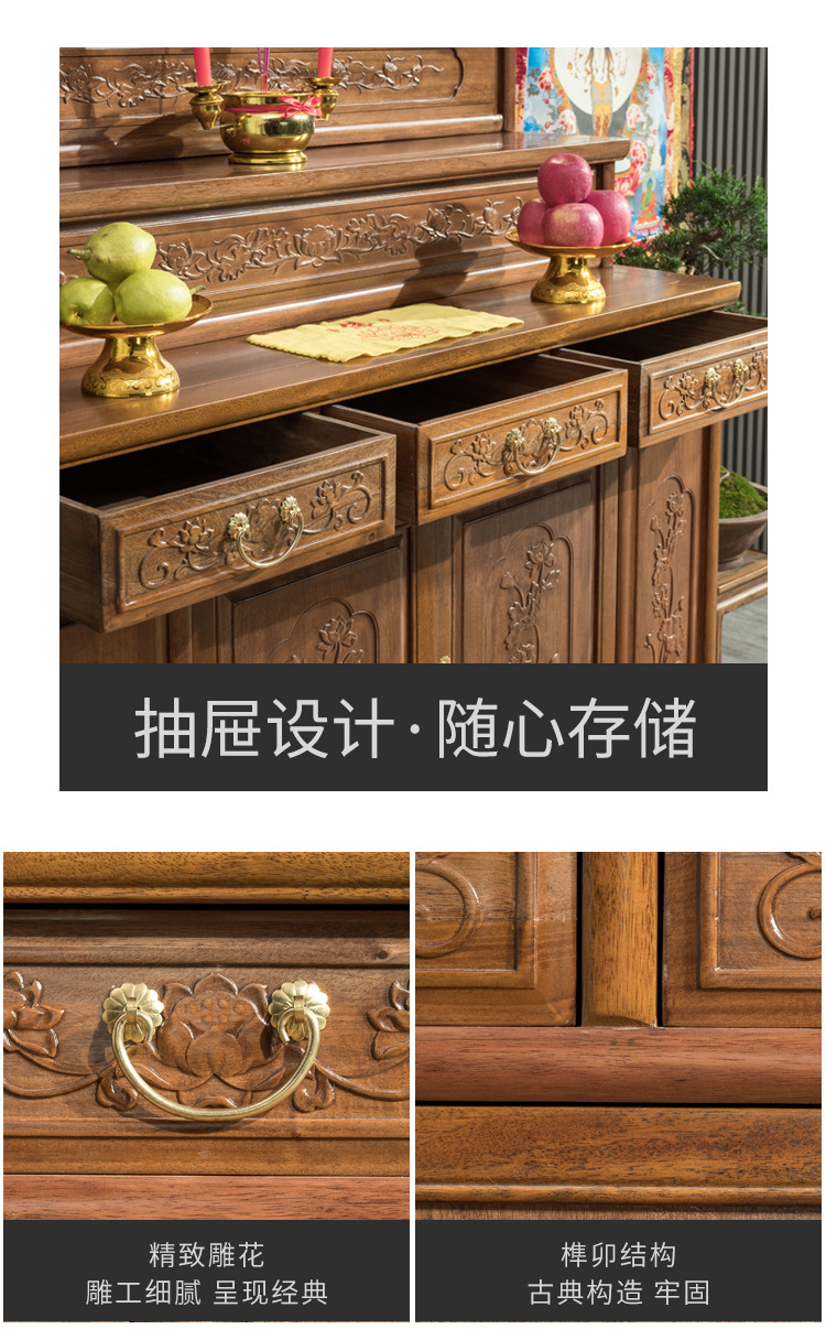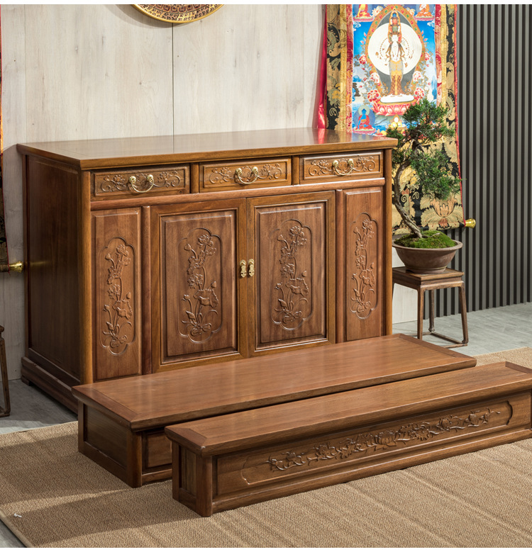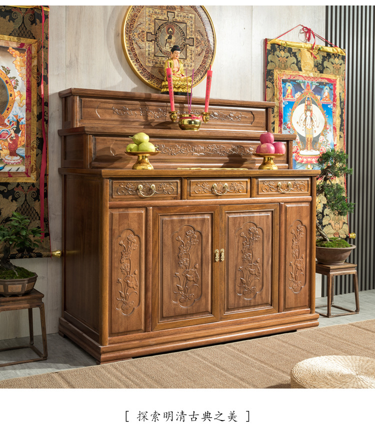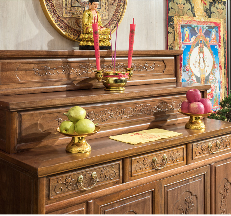 Three layer Shrine Sacred Table Buddha Table Household Rural Solid Wood Incense Strip Case Nuneum God of Wealth Cabinet Worship Guanyin Shrine