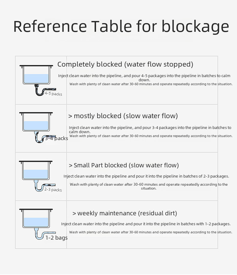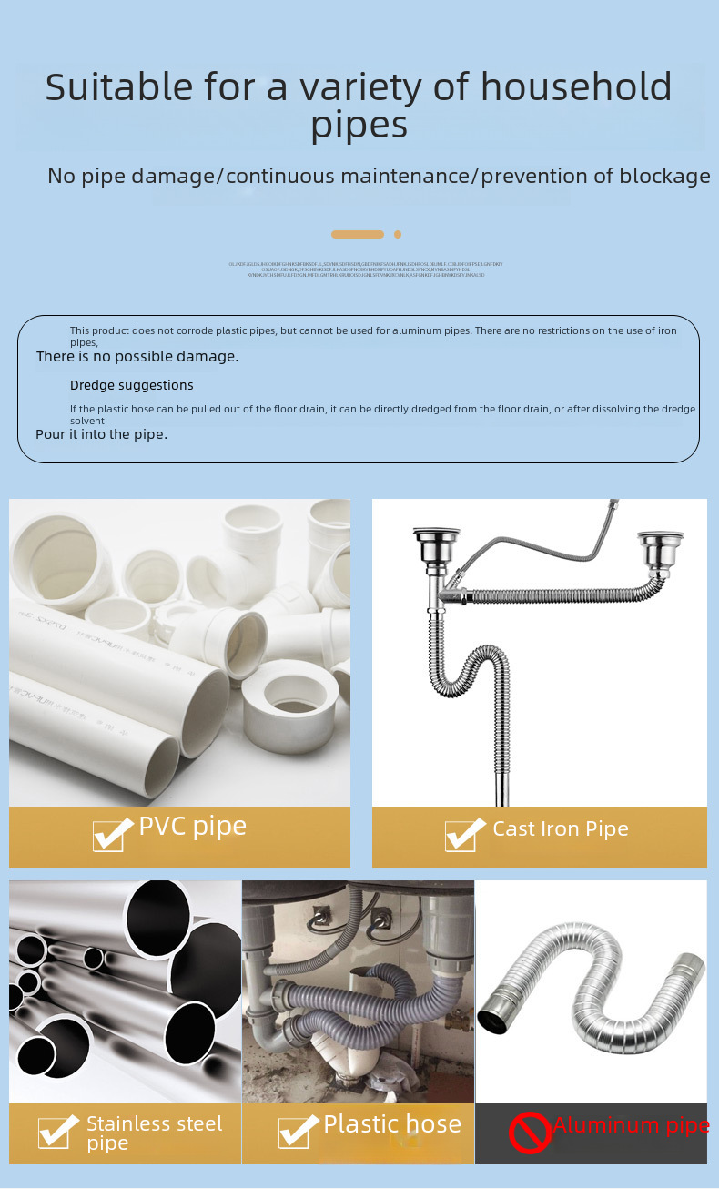 Fast-Acting:The product is designed to act quickly, efficiently clearing out clogs and blockages to restore free-flowing water to your pipes.