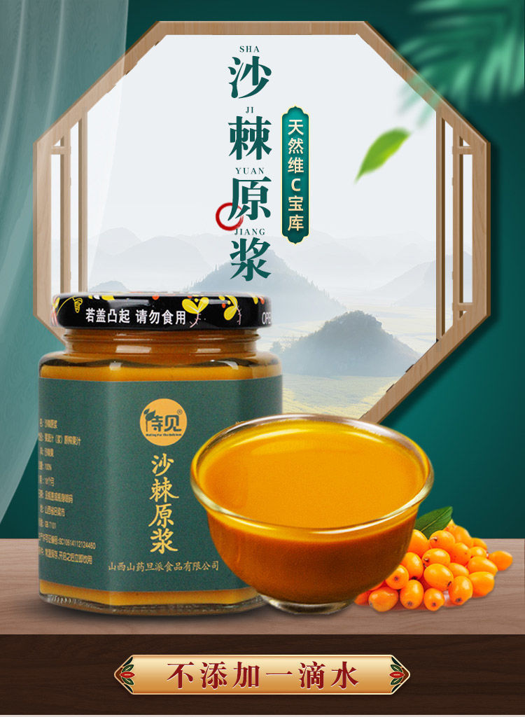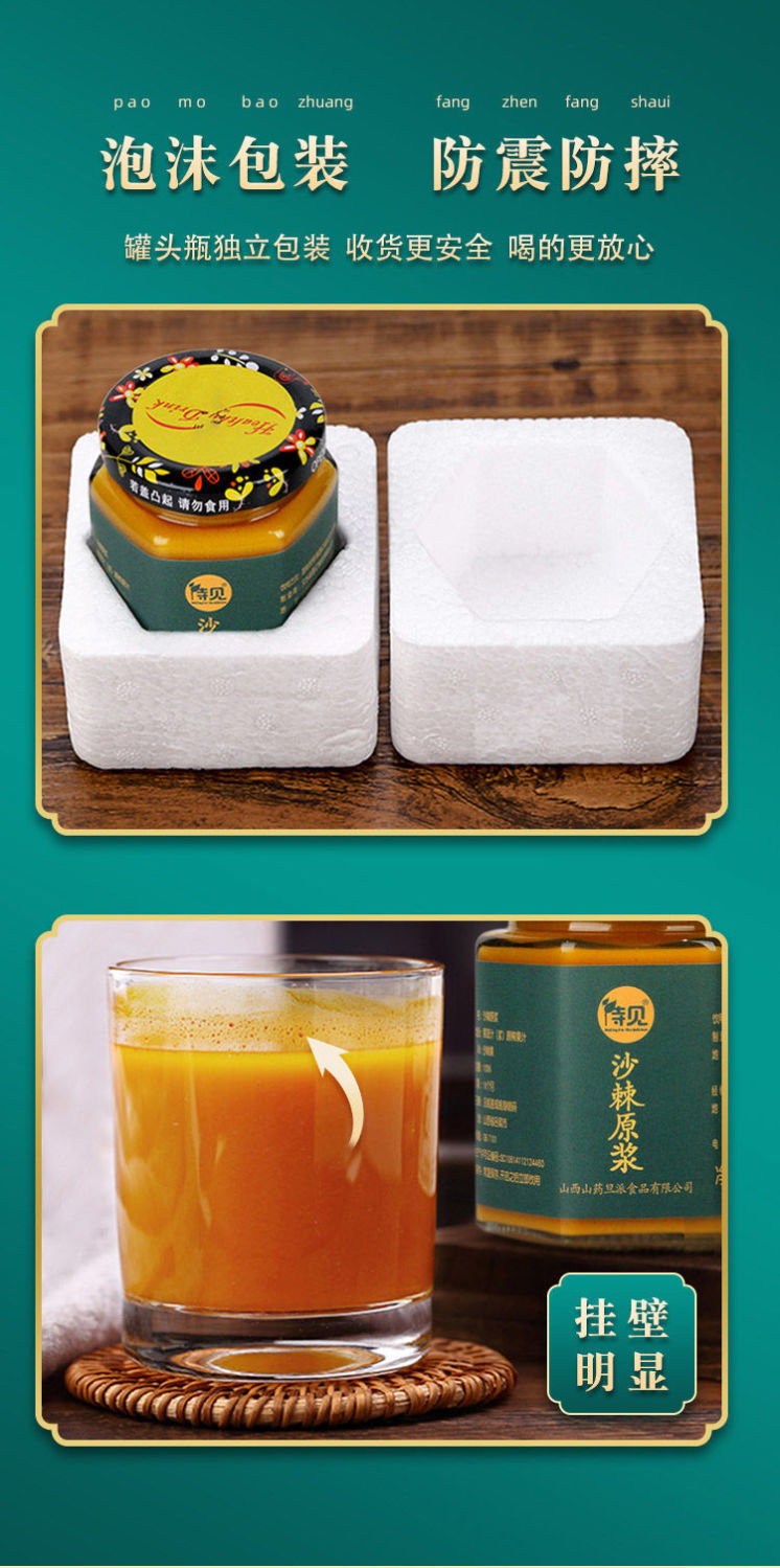 To see sea buckthorn puree 180ml bottle non Inner Mongolia sea buckthorn fresh fruit raw juice 100 raw juice is not added