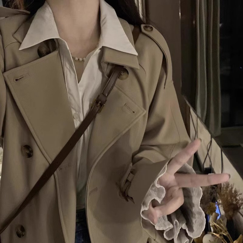 Top Coat for women 2024 New Spring and Autumn Mid-length small loose Western style khaki coat slim fit