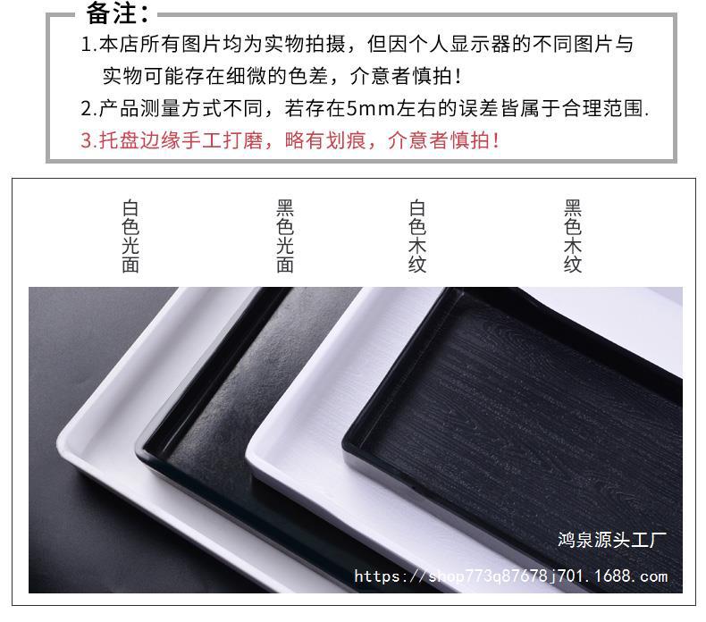 Tray Rectangular Plastic melamine Hotel Room Water Cup Tea Tray Toiletries Storage Tray Restaurant Commercial