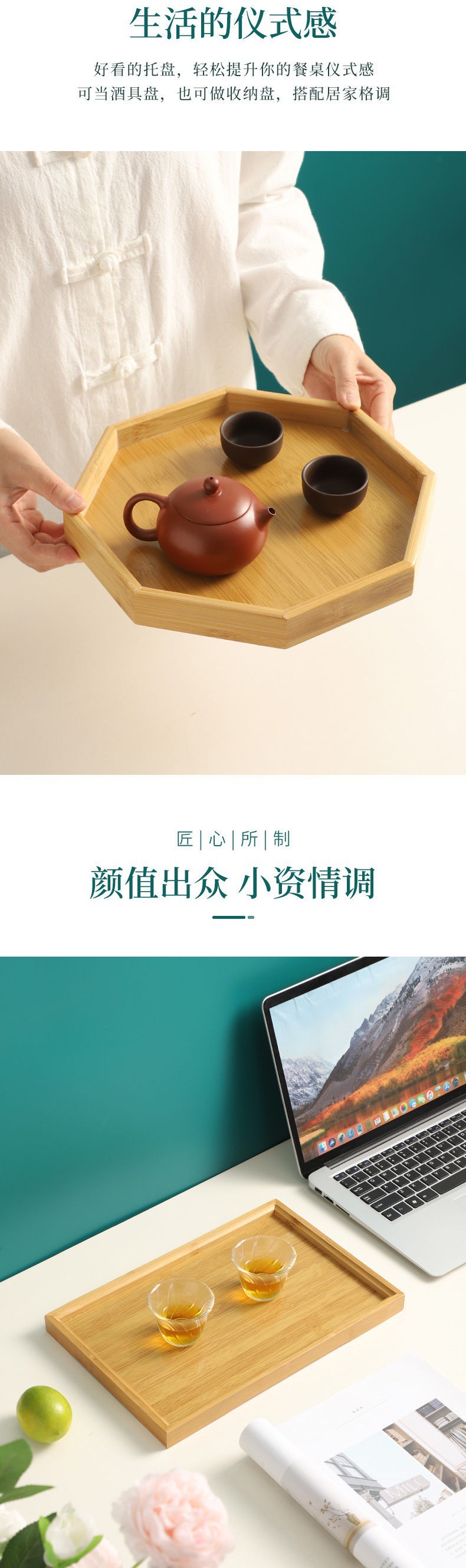 Tray commercial Japanese tea set bamboo wooden tea tray household water Cup tray rectangular bamboo tray hotel restaurant barbecue tray