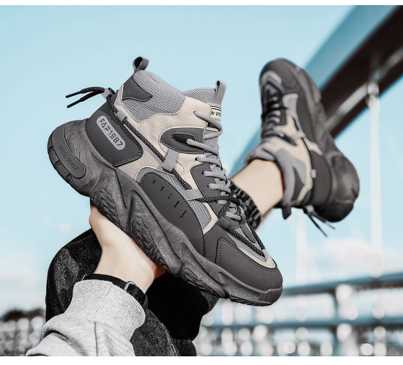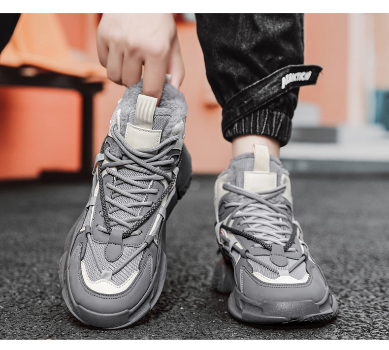 Trendy New Thick-soled Torre Shoes Men's Fleece-lined High-top Ins Youth Men's Sports Shoes Comfortable Casual Trendy Shoes