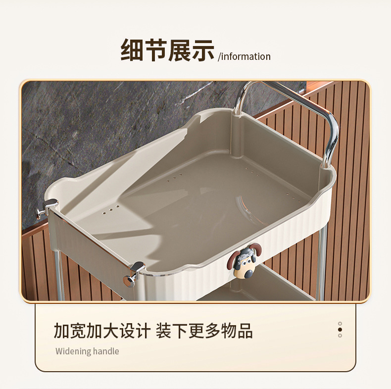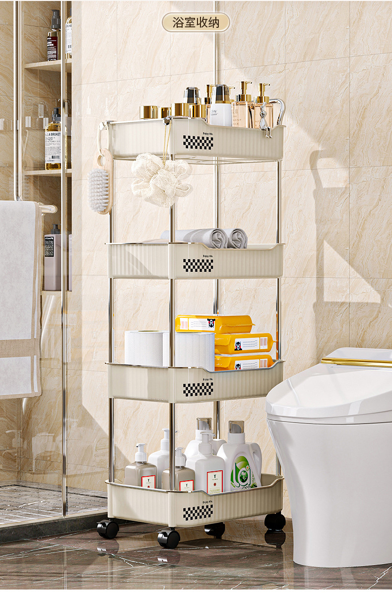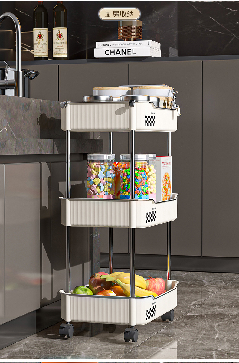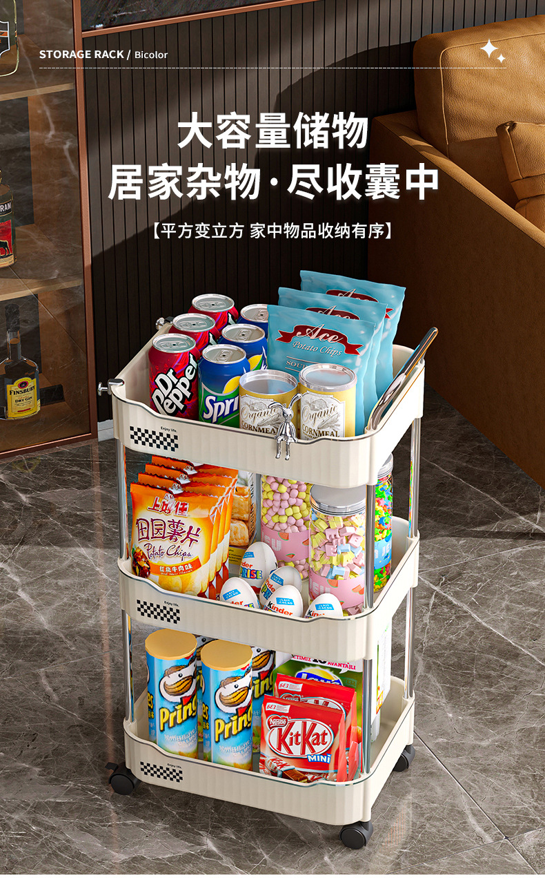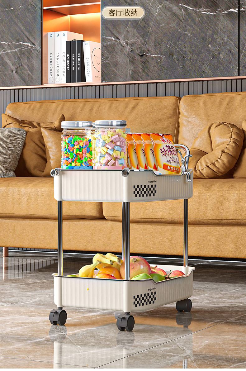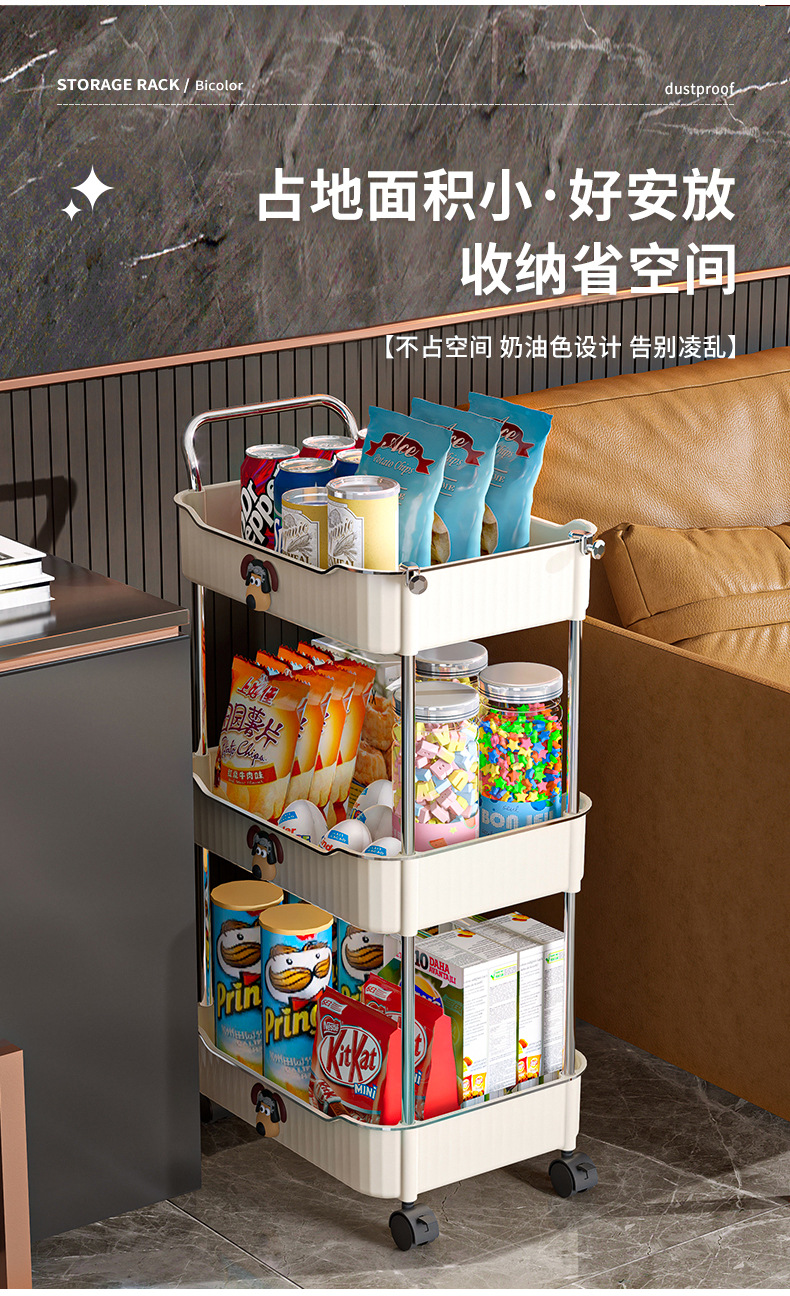 Trolley portable floor snack storage rack living room kitchen bathroom cream style multi layer storage rack