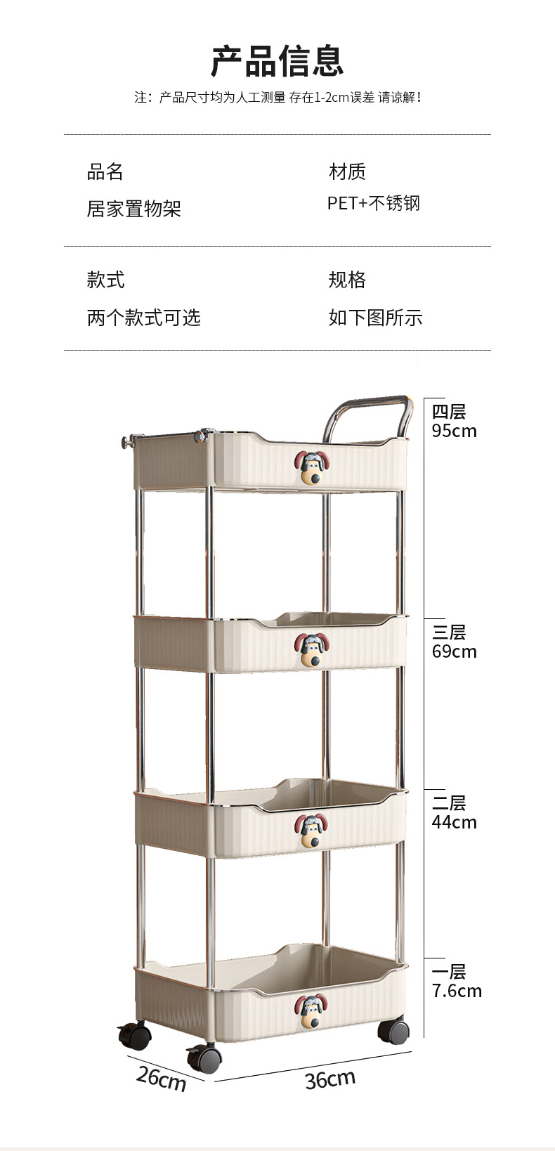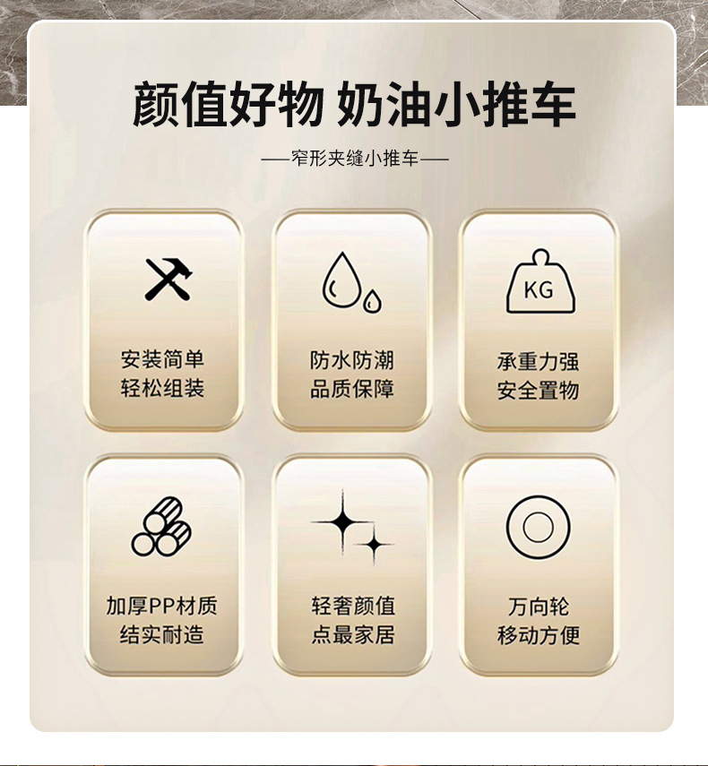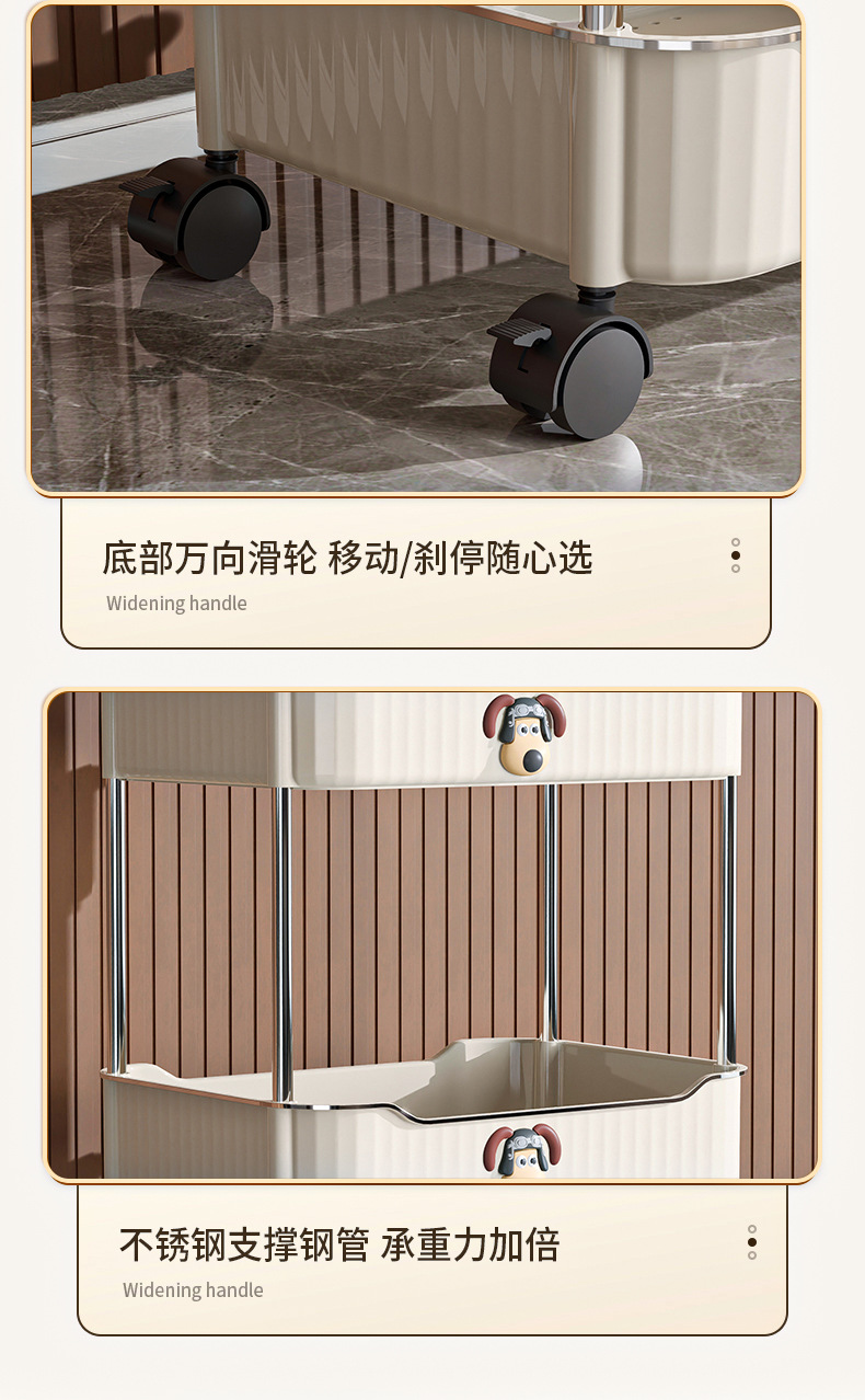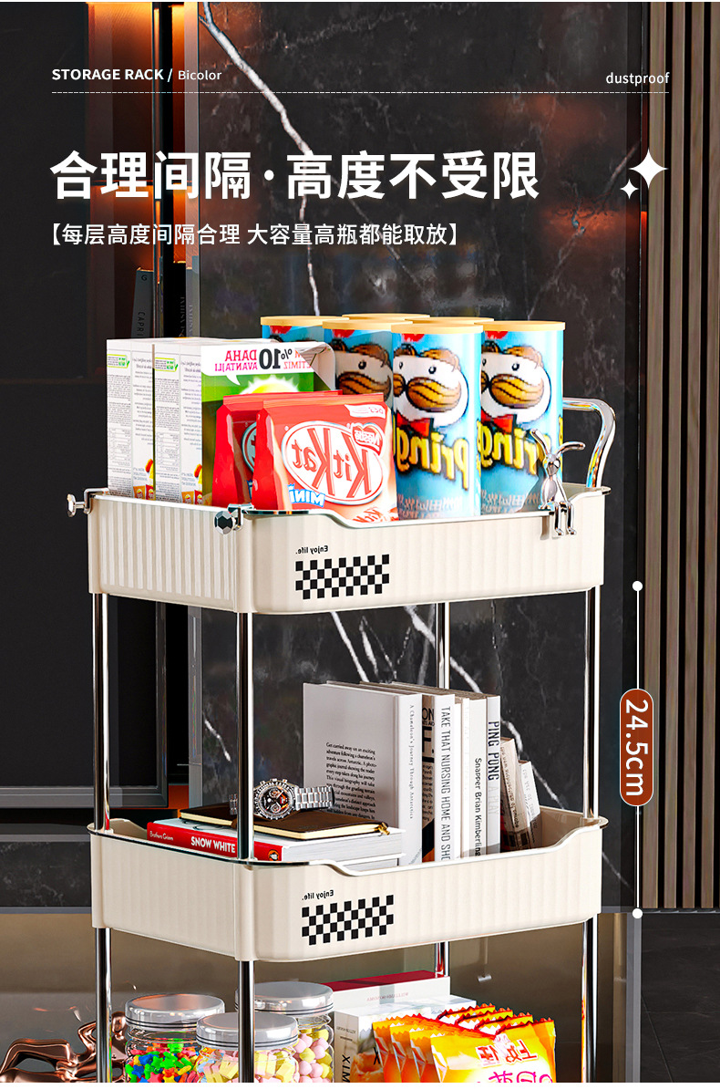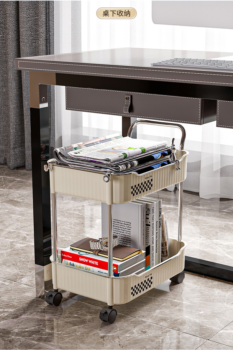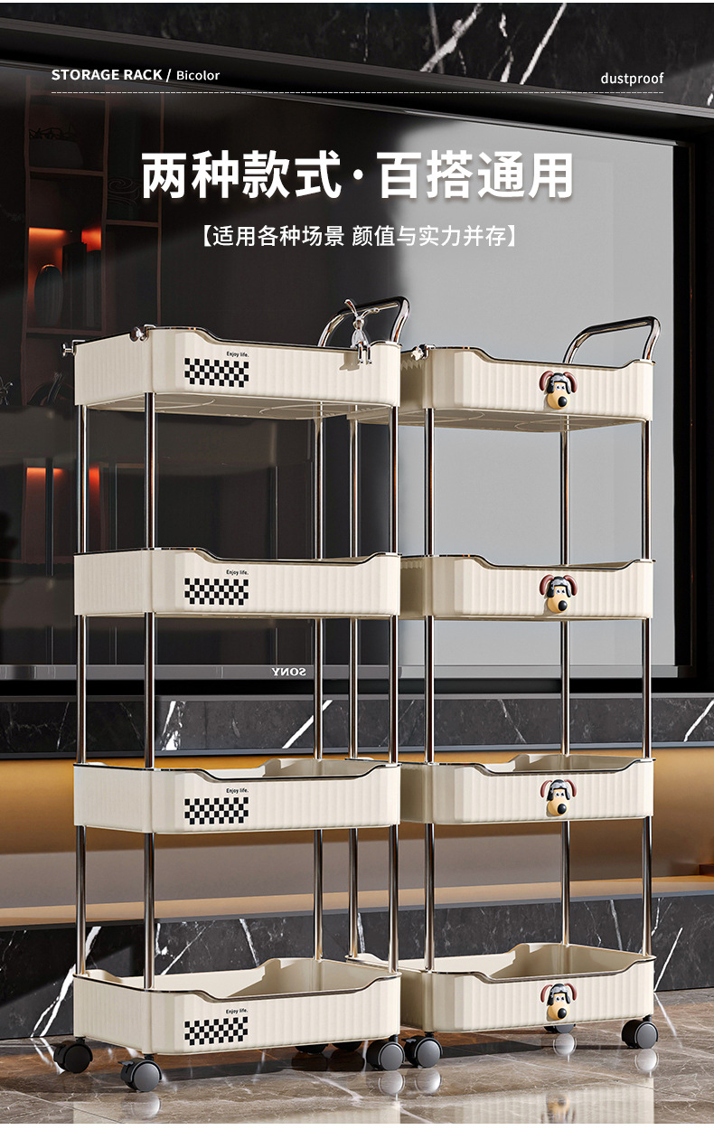 Trolley portable floor snack storage rack living room kitchen bathroom cream style multi layer storage rack