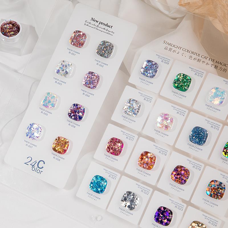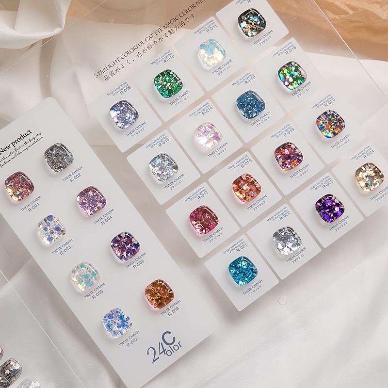 Twilight Rogge Nail Art 24 Color Glittering Large Sequins 2024 New Flash Broken Diamond Super Flash Nail Polish Glue Set
