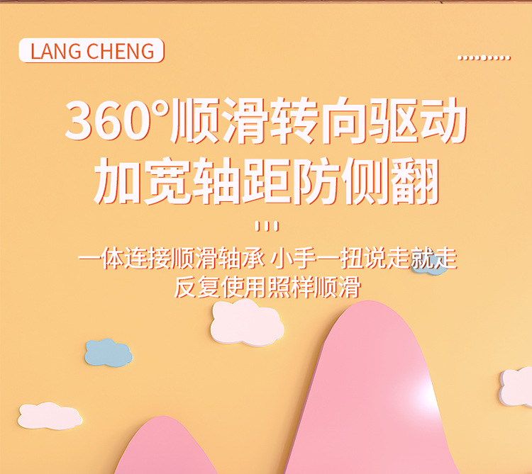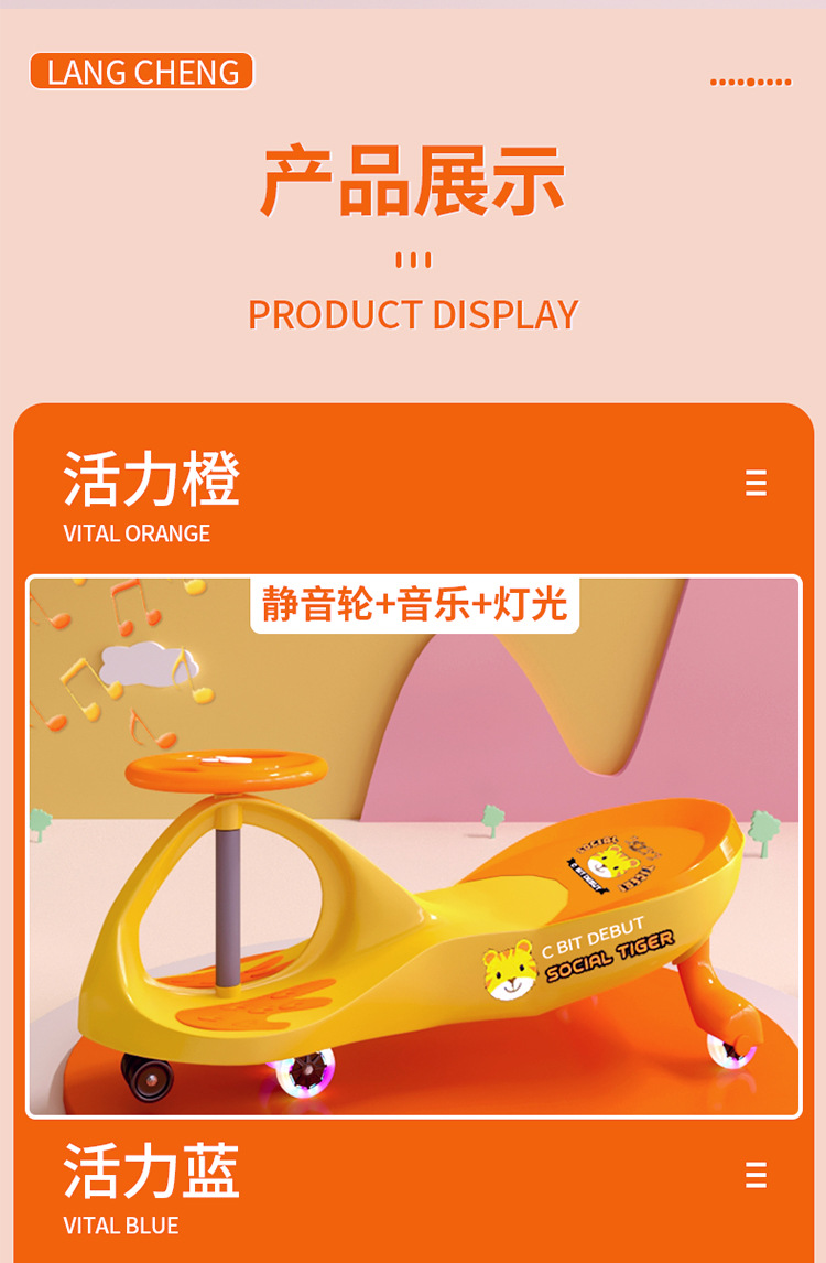 - [Light Orange Mute Flash Wheel Music] Adults can sit on reinforced body to prevent rollover